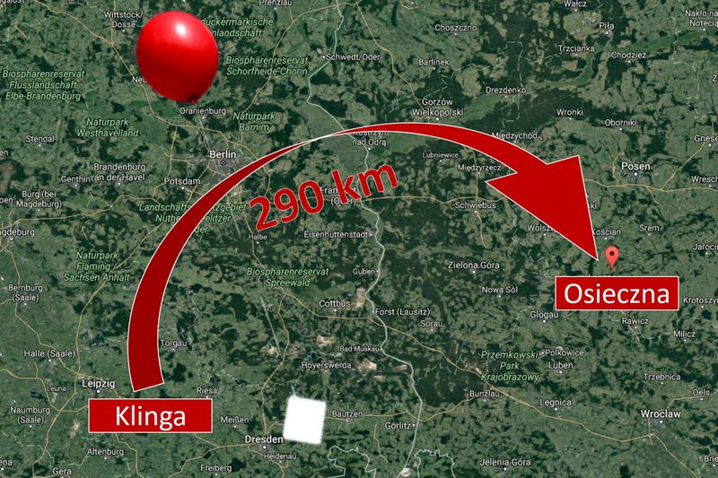 Abgeschickt wurde die Karte von Susann Geidel, Dennis Dettke, Steffi und Olaf Geidel, Frank, Angela, Rico, Ronny Richter, Sandra, Philipp, Quentin und Tessa Reimann, Eli und Isabell Giva. Da die meisten Luftballons nicht den erwarteten Auftrieb zeigten, freut uns diese 290 Kilometer Luftlinie weite Reise ganz besonders. Noch mehr freut uns, dass Krzysztof Jedrzejczak aus Osieczna sogar geantwortet hat. Herzlichen Dank dafür und vor allem für die netten Grüße auf der Karte: „Serdecznie pozdrawiamy i zyczymy duzo sukcesow!“ – „Wir grüßen Sie herzlich und wünschen Ihnen viele Erfolge!“ Herzliche Grüße aus Klinga zurück an Krzysztof Jedrzejczak in Osieczna in Polen!