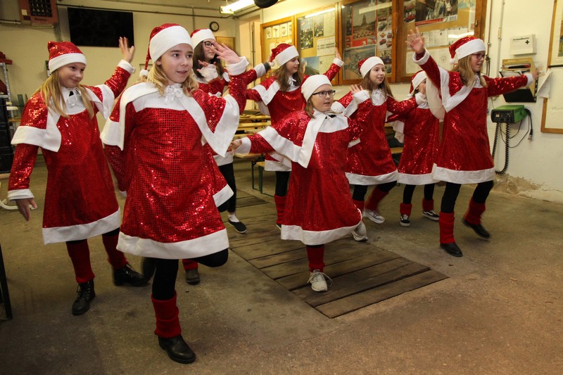 Nach kurzen Willkommensworten vom Fördervereinsvorsitzenden wurde mit dem gemeinsamen Singen des Liedes „Schneeflöckchen, Weißröckchen“ für eine weiße Weihnacht geworben. Danach öffnete sich das rote Rolltor zur Fahrzeughalle, wo die Bailando Niñas mit einer weihnachtlichen Tanzshow ihr Publikum begeisterten. Anschließend luden Glühwein und Kinderpunsch, weihnachtliches Gebäck oder Schnittchen von der Jugendfeuerwehr zum Verweilen und gemeinsamen Gesprächen ein.