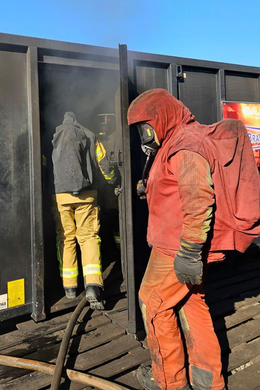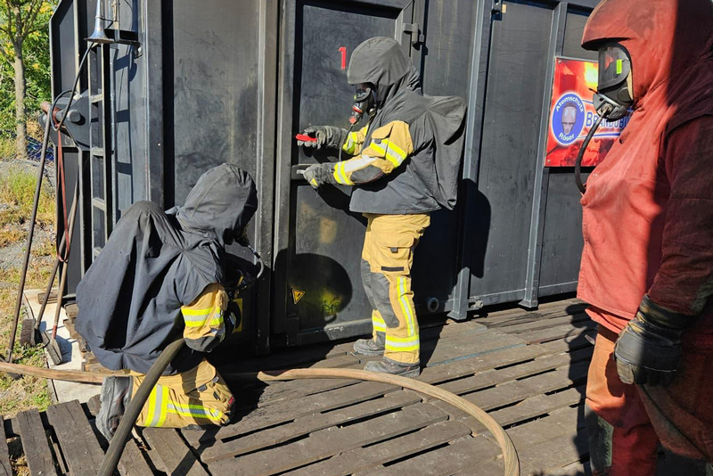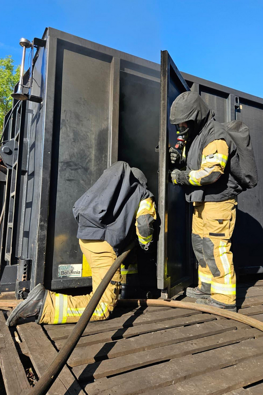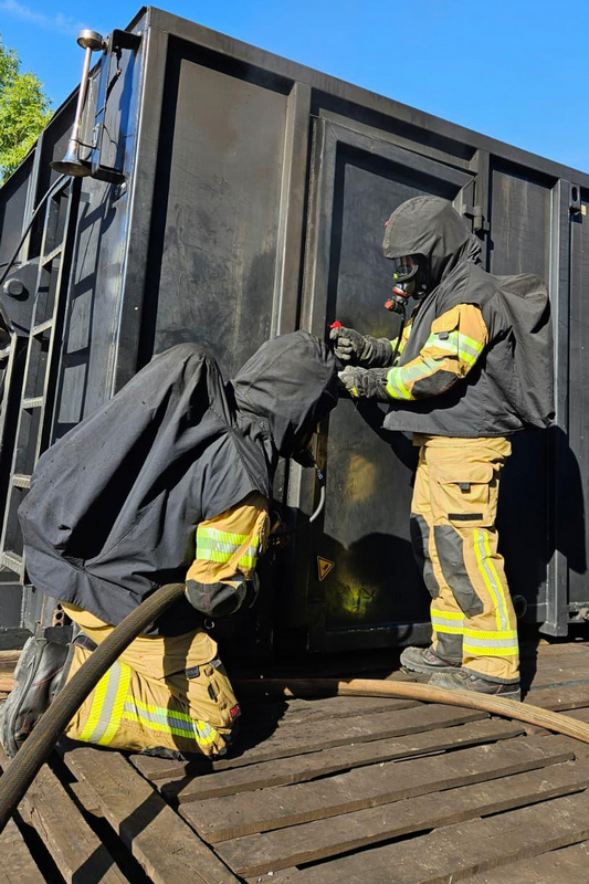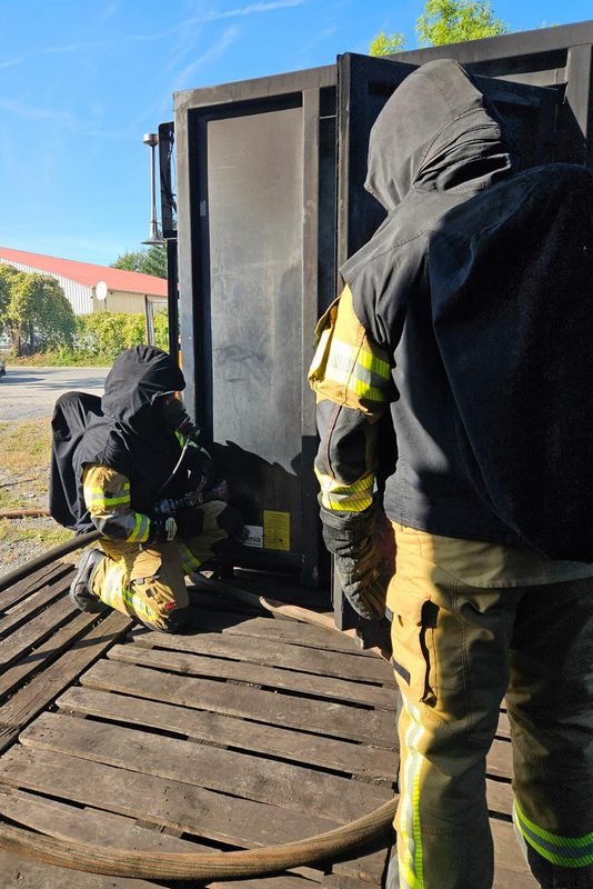 Magnus Lehmann, Sebastian Metzker und Jonas Schwarcz hatten ein gesamtes Wochenende mit rund 25 Ausbildungsstunden in die Qualifizierung investiert. Am Sonntag ging es für die drei dann auch zur Heißausbildung in den Brandcontainer der Firma Atemschutz Röser. Herzlichen Dank an Atemschutz Röser für das Bildmaterial!