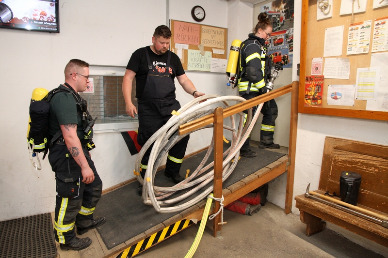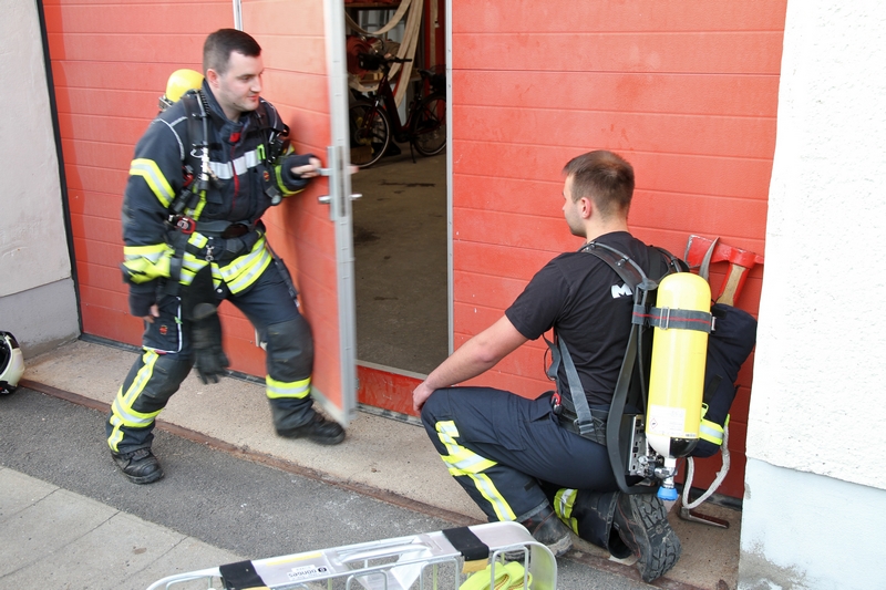 Klingas Feuerwehrleute trainierten heute das Vorgehen bei der Brandbekämpfung in geschlossenen Räumen.
