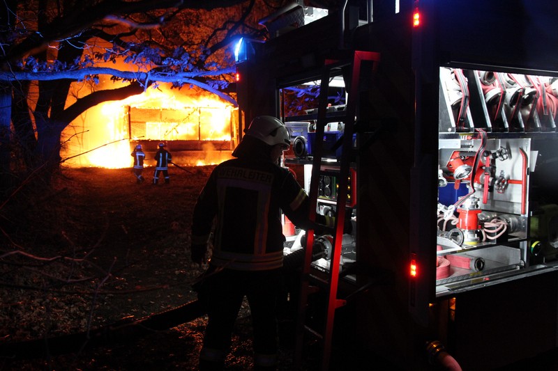 Um 06.38 Uhr alarmierte die Leitstelle alle vier Parthensteiner Ortsfeuerwehren sowie die Feuerwehr Naunhof wegen beobachteten Feuerscheins und eines vermuteten Lauben-/Gebäudebrandes. Beim Eintreffen an der Einsatzstelle fanden die Feuerwehrleute einen größeren Bungalow in Vollbrand vor. Die Löschwasserversorgung konnte unter anderem über die nahe Parthe erfolgen. Der Brand konnte im Zusammenwirken mit den anderen Feuerwehren abgelöscht und auch ein Übergreifen des Feuers auf umliegende Bäume verhindert werden.