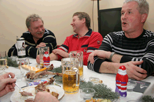 Mit der Weihnachtsfeier stand ein besinnlicher Jahresausklang auf dem Ausbildungsplan der Freiwilligen Feuerwehr Klinga. Im liebevoll-festlich dekorierten Versammlungsraum dankten Wehrleiter Michael Pohl und Fördervereinsvorsitzender Ralf Saupe den Kameradinnen und Kameraden für ihren Einsatz und das gemeinsame Zusammenwirken, bevor knusprige Gänsekeulen mit Klößen und Rotkohl zum Festschmaus einluden. Der Förderverein hatte sogar den Weihnachtsmann engagiert, der die Runde mit einem kleinen Präsent überraschte. Bei Bier, Schnäpschen und Wein wurden anschließend Pläne fürs neue Jahr geschmiedet.