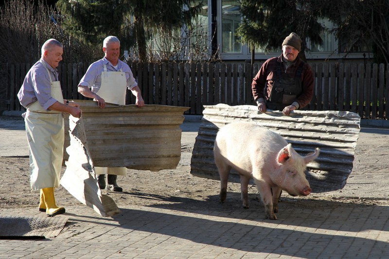 Ein 230-Kilo-Schwein verwandelt sich derzeit in ein deftiges Schlachtebüffet für Klingas Feuerwehrmannschaft.