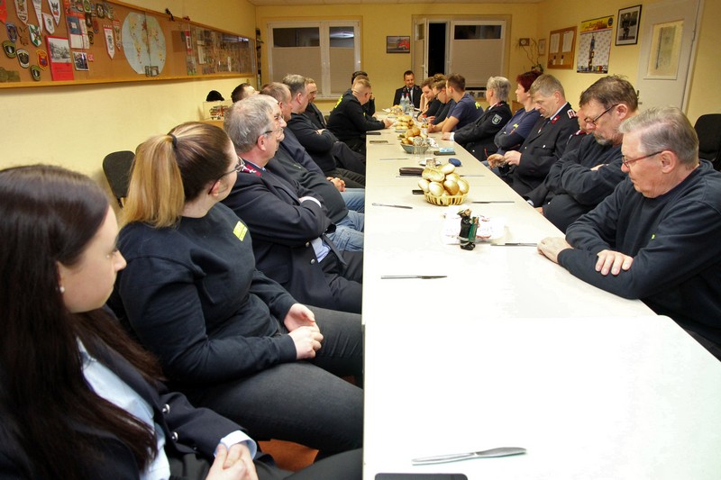Ortswehrleiter Mario Rumberger und Jugendfeuerwehrwart Steffen Schumann legten dabei Rechenschaft über die geleistete Arbeit ab. Dabei fanden sie viele lobende Worte, sparten aber auch nicht mit konstruktiver Kritik. In ihren Grußworten dankten auch Bürgermeister Jürgen Kretschel, Gemeindewehrleiter Sven Medicke und Fördervereinsvorsitzender Ralf Saupe den Frauen und Männern für die geleistete Arbeit und das erfolgreiche Zusammenwirken. Im Anschluss konnten die Anwesenden bei Mettbrötchen und Getränken miteinander ins Gespräch kommen und mit einer Diashow das Jahr 2022 Revue passieren lassen. Paula Trinks hatte extra noch einen Feuerwehrkuchen gebacken, der rasch seine Abnehmer fand.