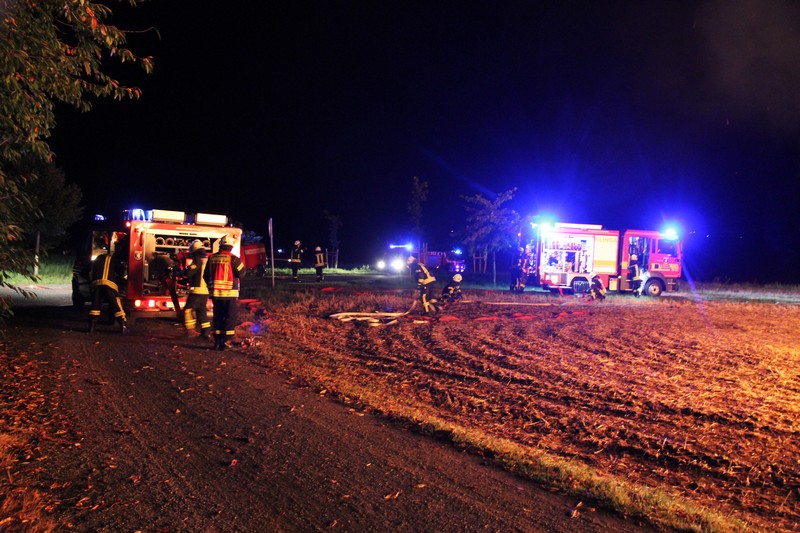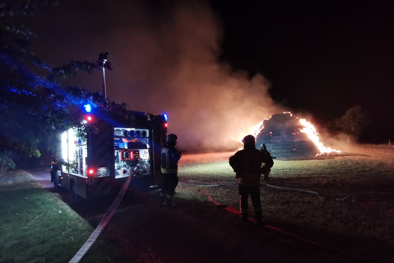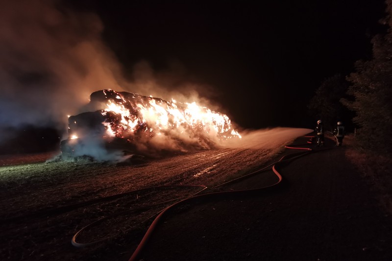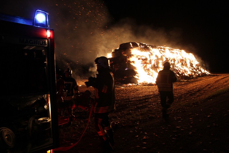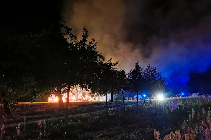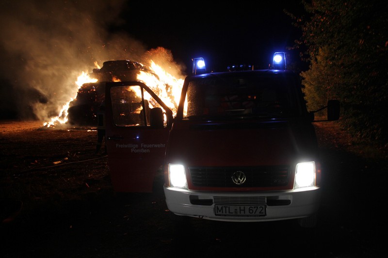 Kurz nach Mitternacht rückten Klingas Feuerwehrleute wegen brennender Strohballen nach Pomßen aus.