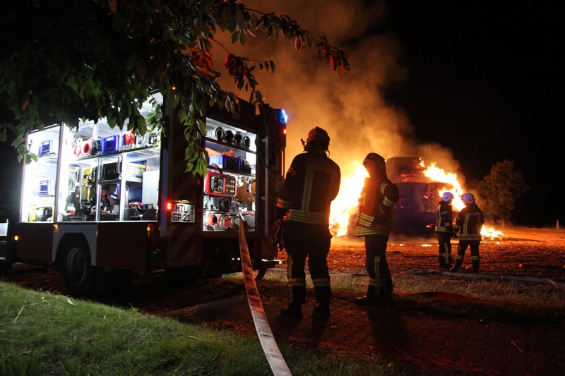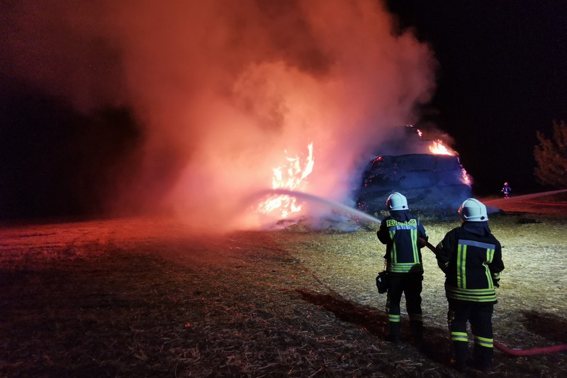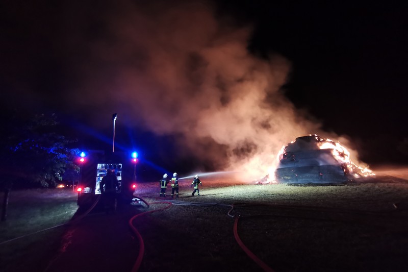 Um 0.05 Uhr alarmierte die Leitstelle alle Parthensteiner Ortsfeuerwehren und die Feuerwehr Naunhof. Nahe dem Kreuzungsbereich Pomßener Landstraße und Großsteinberger Straße befand sich eine großer Stapel mit Strohballen in Vollbrand. Nach Erkundung der Einsatzstelle wurde die Löschwasserversorgung hergestellt und mit dem Löschangriff begonnen. Zudem wurde ein Radlader geordert, um die Ballen gegebenenfalls auseinanderziehen zu können. Später wurde die Entscheidung getroffen, die Strohballen kontrolliert abbrennen zu lassen und das umliegende Areal zu schützen. Klingas Einsatzkräfte konnten daraufhin abrücken. Der Gesamteinsatz wird voraussichtlich bis in den Morgen andauern.