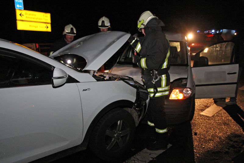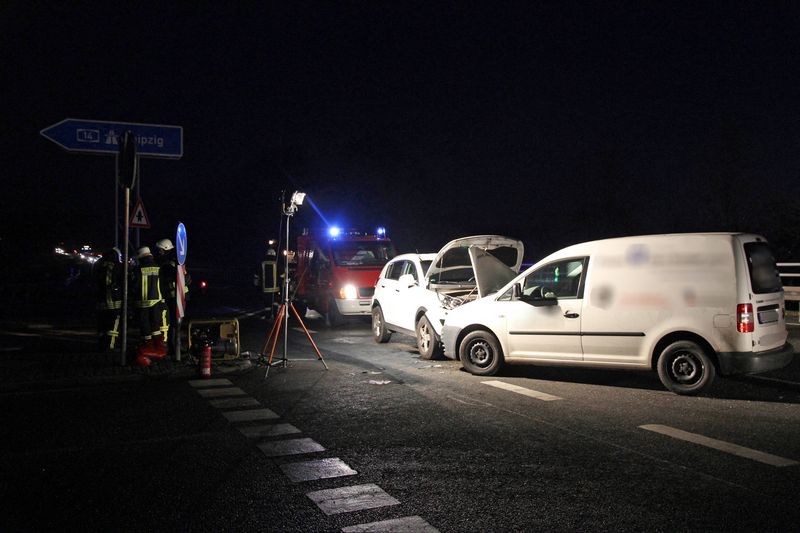Um 06.18 Uhr forderte die Leitstelle die Klingaer und Großsteinberger Einsatzkräfte an die Anschlussstelle Klinga der Autobahn 14. Dort war ein Kleintransporter beim Abbiegen mit einem Pkw kollidiert. Dabei entstand erheblicher Sachschaden an beiden Fahrzeugen.