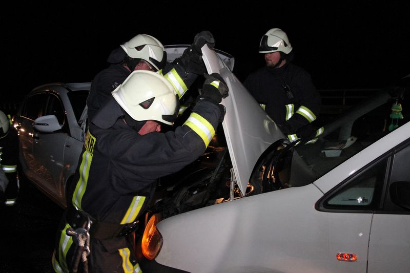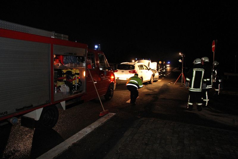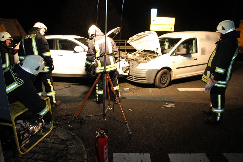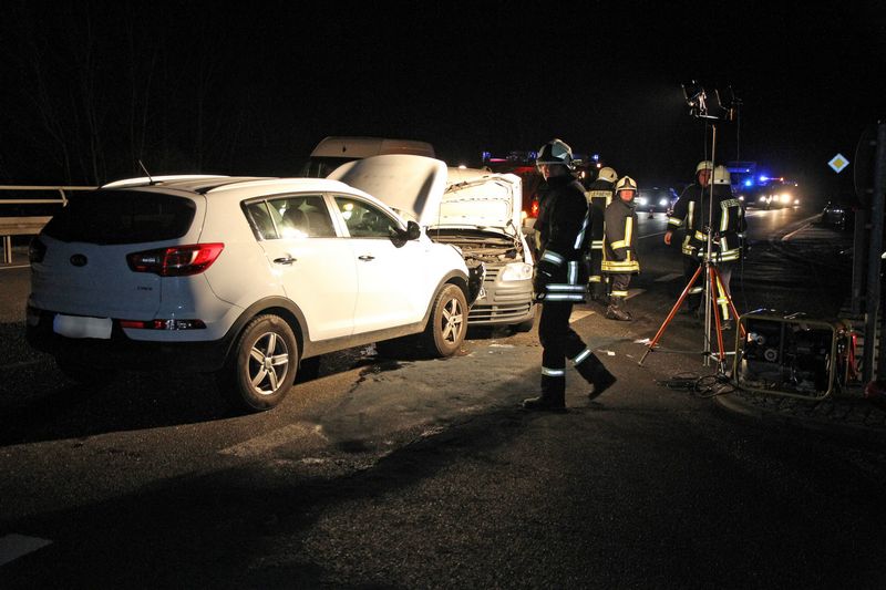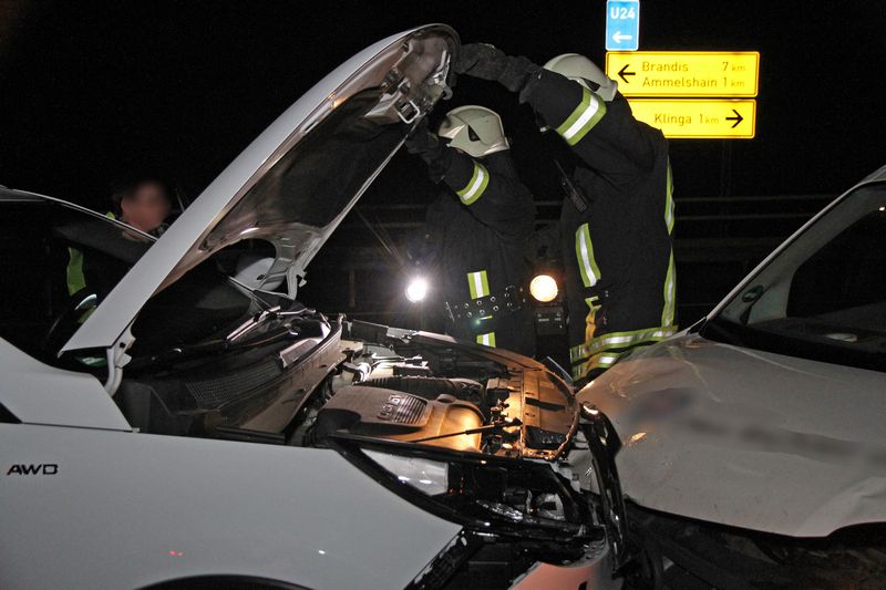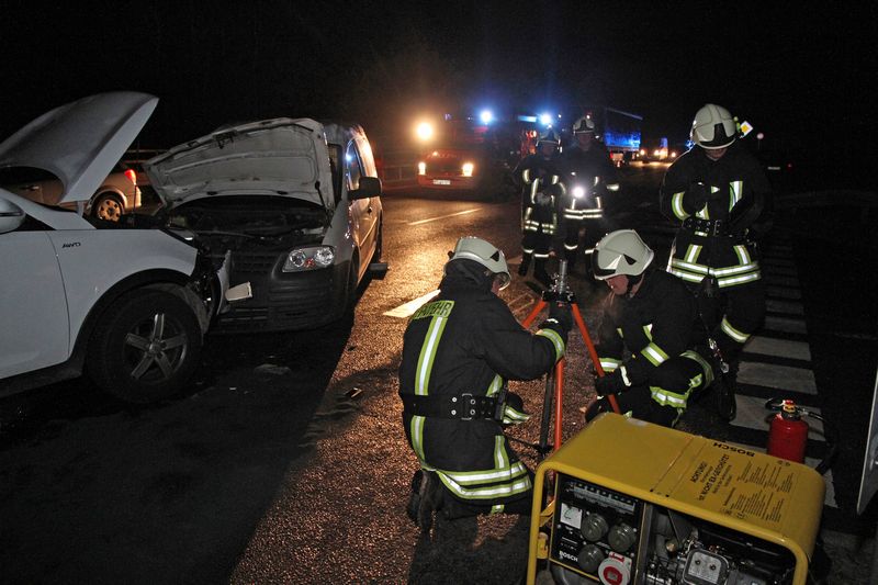 Die Klingaer Einsatzkräfte sicherten die Einsatzstelle und leuchteten sie aus, machten die verunfallten Pkw stromlos, banden ausgelaufene Betriebsstoffe und nahmen sie auf.