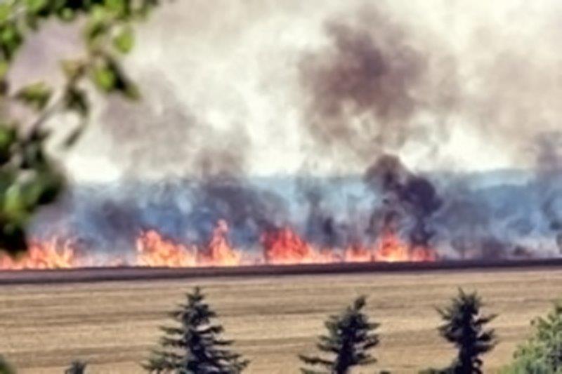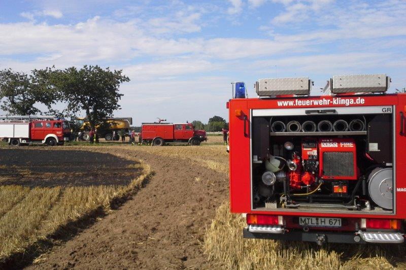 Zur Bekämpfung eines Feldbrandes in Pomßen rückten auch die Einsatzkräfte der Klingaer Feuerwehr aus.