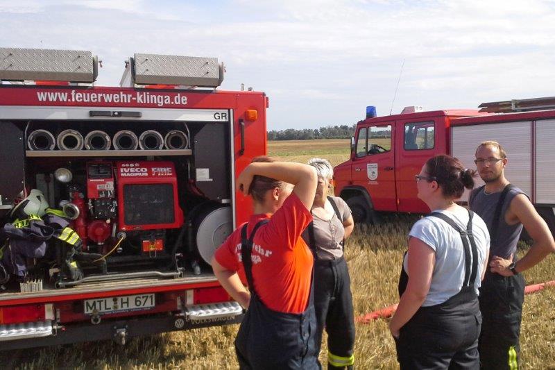 Um 15.48 Uhr wurden die Freiwillige Feuerwehr Klinga alarmiert. Die Agrargenossenschaft Pomßen hatte einen Feldbrand an der Belgershainer Straße gemeldet. Gemeinsam mit den Feuerwehren aus Grethen, Großsteinberg und Pomßen unterstützen die Klingaer Feuerwehrleute die Brandbekämpfung vor Ort.