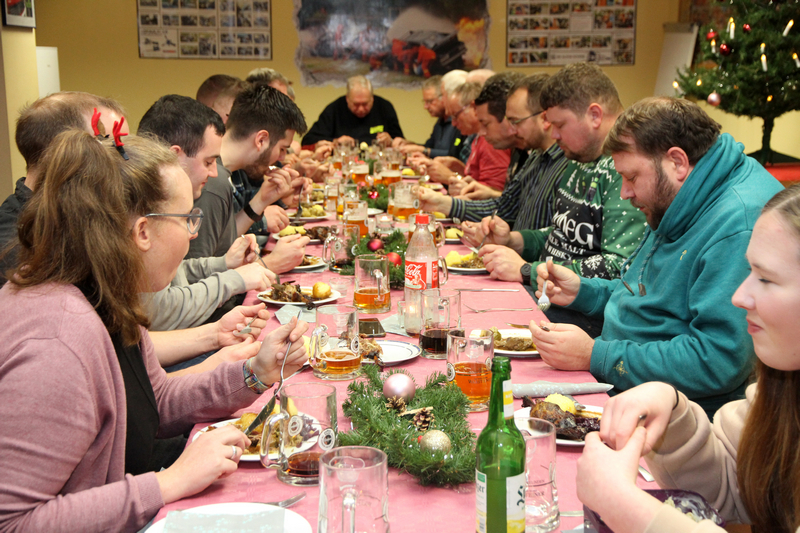 Zur Stärkung gab es anschließend Gänsekeulen, Wild, Rotkraut, Rosenkohl, Pilze und Klöße. Natürlich wurde auch mit Löschwasser ganz nach Geschmack der Durst bekämpft.