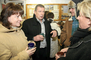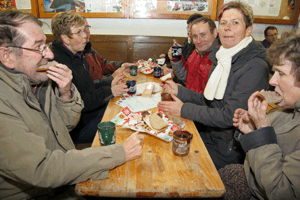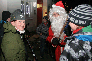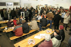Nach einer kurzen Begrüßung durch Ralf Saupe trug Susann Luebeck-Busch Besinnliches zur Adventszeit vor. Maria Scholz begeisterte mit “Sind die Lichter angezündet”, bevor alle Anwesenden gemeinsam das Weihnachtslied “Guten Abend, schön Abend” anstimmten. Anschließend strömten die gut 100 Gäste ins warme Gerätehaus, um sich bei so manchem Plausch an Glühwein und Weihnachtsgebäck, Leberwurst- und Fettschnitten zu laben. Sogar der bärtige Alte alias Christine Erbs schaute vorbei, um die Kinder mit Süßigkeiten zu überraschen.