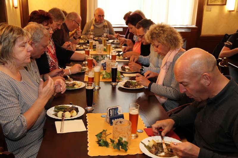 Am Sonnabend fuhren die Feuerwehrfreunde mit ihrem Busfahrer David zunächst in die Landskron Braumanufaktur nach Görlitz. Nach einer kurzweiligen Braumeister-Führung stärkten Bier und Braumeisterbraten die Mitreisenden, die anschließend zur Stadtwächterführung in die Görlitzer Altstadt weiterrollten. Nach allerlei Wissenswertem über die schöne Neißestadt und einem Abschiedstrunk ging die Fahrt weiter ins Schlosshotel Althörnitz bei Zittau. Nach einem Abendessen überraschte dort KurtL mit „Oberlausitzer Liedermaching“ die Klingaer und gewann mit seinem rollendem „R“ und seinem „Dingeling“ rasch eine neue Fan-Gemeinde. Am nächsten Morgen führte die Reiseroute nach Bautzen zur Türmerführung, die vom Matthiasturm auch einen Rundumblick über die gut erhaltene Altstadt ermöglichte. Zudem gab es einen Zwischenstopp im Bautzener Senfmuseum mit Verkostung alter und neuer Kompositionen. Auf dem Weiterfahrt gab es noch einen Halt in der Radeberger Destillation & Liqueurfabrik, wo ein guter Schluck nach Richters Originalrezept eingenommen wurde und manche Flasche Magenmedizin mit auf die Heimfahrt nach Klinga ging.