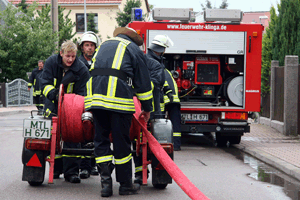 Klingas Feuerwehrleute rückten zum Löscheinsatz nach Großsteinberg aus. Dort hatten beherzte Nachbarn bereits zum Gartenschlauch gegriffen.