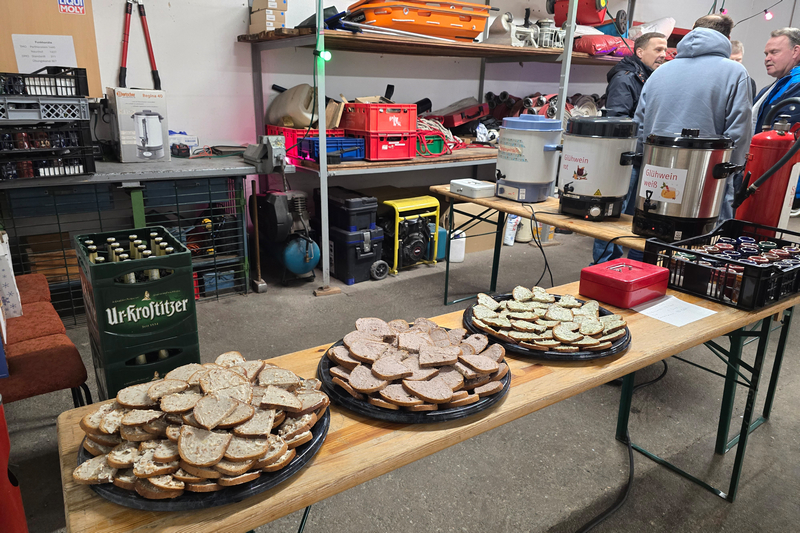 Bei Glühwein, Kinderpunsch und auch kühlen Getränken wurde gemeinsam das neue Jahr begrüßt und bei zahlreichen Gesprächen bereits neue Pläne geschmiedet. Die Klingaer Jugendfeuerwehr kredenzte Schnitten mit Leberwurst, Fett oder Kräuterbutter. Mit Weihnachtsgebäck und Stollen wurden zudem im geschmückten Gerätehaus die Reste vom Fest unters Volk gebracht.