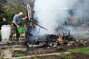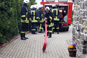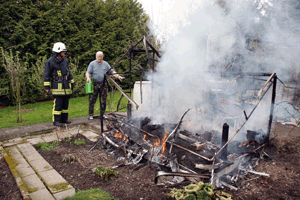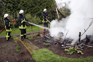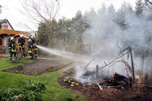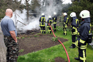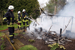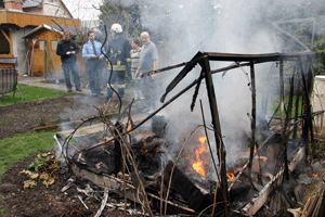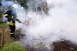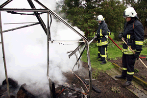 Klingas Feuerwehrleute rückten in die Siedlung aus, um einen Gewächshausbrand zu löschen.