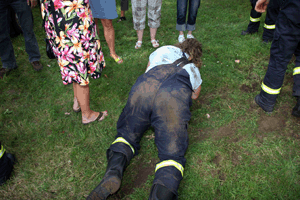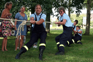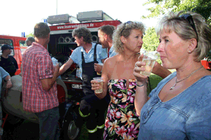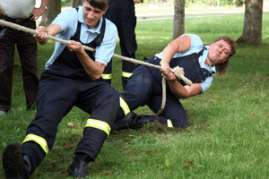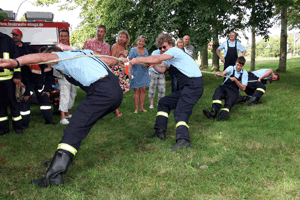 Leider unterlagen die Klingaer trotz enthusiastischer Anfeuerungsrufe von Mitgliedern ihres Fördervereins den Pomßenern im Tauziehen – aber erst, nachdem sie das Tau zunächst zerrissen hatten. Als Trostpreis gab es für die Klingaer ein Fässchen Löschwasser, das sie sich auch gleich vor Ort schmecken ließen.