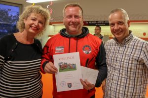 Es war eine sportliche Ehrensache, unserem befreundeten Verein zu diesem Jubiläum zu gratulieren und unsere Glückwünsche zu überbringen. Kay-Uwe Droll nahm als stellvertretender Vereinsvorsitzender neben einer Erinnerungsurkunde auch einen Gutschein für zukünftige Vereinsanschaffungen entgegen. Wir wünschen dem SV Klinga-Ammelshain weiterhin viele sportliche Erfolge!