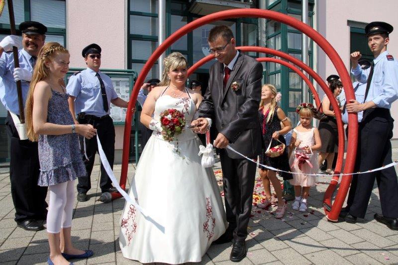 Am 10. August gaben sich die Feuerwehrleute Ines und Hartmut Gnauck das Ja-Wort – Klingas Feuerwehr gratulierte mit.