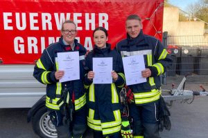 Nick Schmidt, Paula Trinks und Sarah Hennersdorf legten ihre Prüfung zum Lehrgang „Truppmann 1“ bei der Feuerwehr Grimma erfolgreich ab. Zeitgleich waren Peter Baudisch und Victor Kirchner in Brandis zu Gast, wo sie ihre Prüfung zum Truppführer-Lehrgang erfolgreich meisterten. Wir gratulieren allen Feuerwehrleuten herzlich und wünschen ihnen weiter eine erfolgreiche Arbeit in unserer Feuerwehr!
