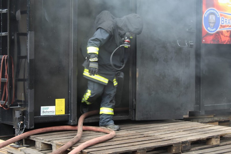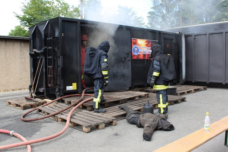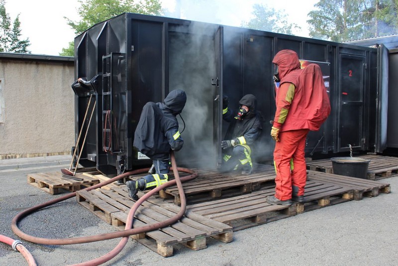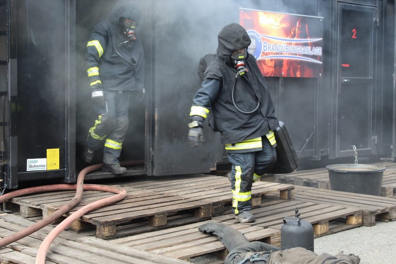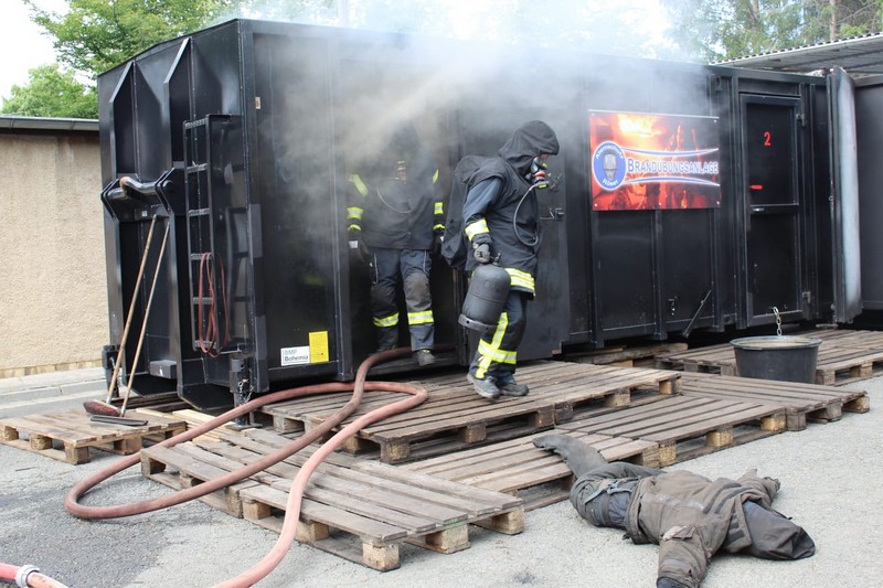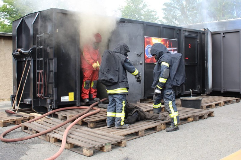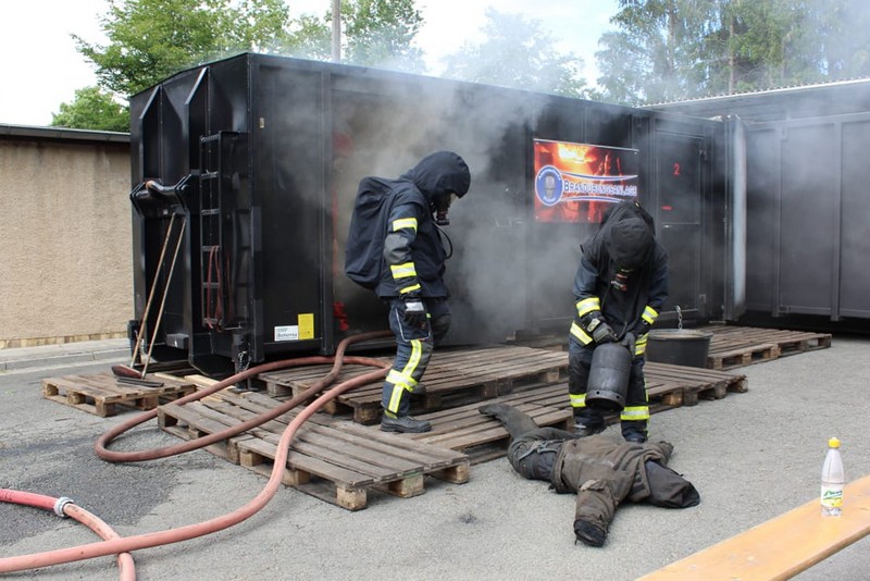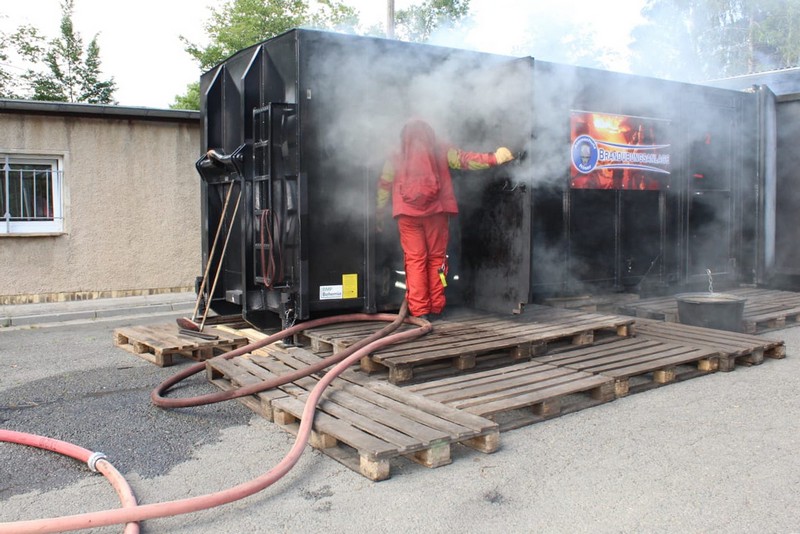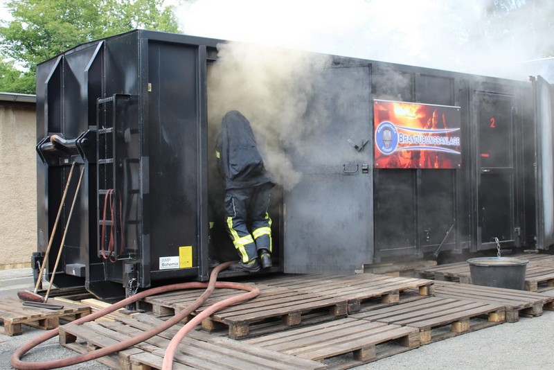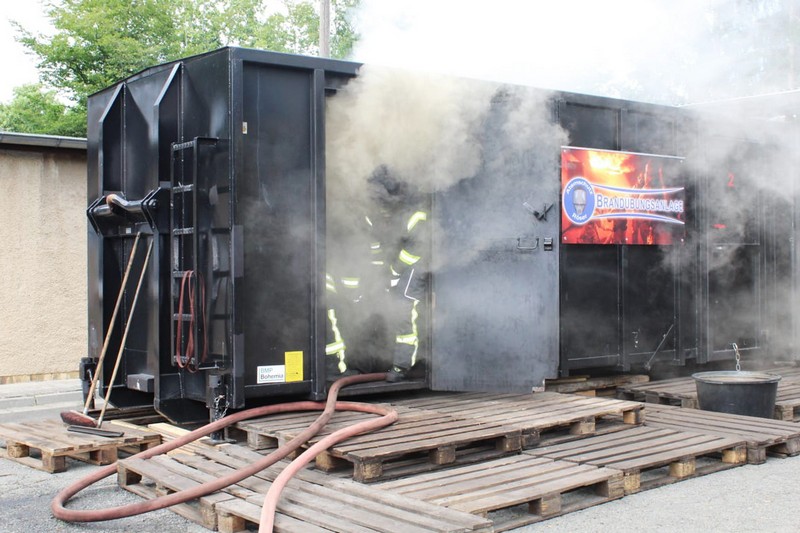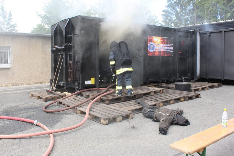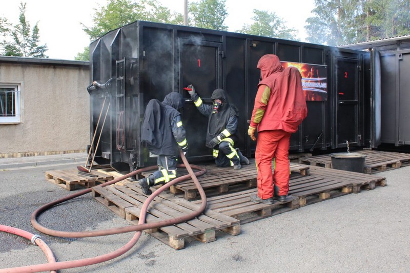 Die Firma Atemschutz Röser war mit ihrer feststoffbetriebenen Brandübungsanlage und ihren Ausbildern bei der Freiwilligen Feuerwehr Taucha zu Gast – und ein freier Platz konnte durch Klingas Feuerwehr genutzt werden. Die Kosten dafür trug der Klingaer Feuerwehr-Förderverein.