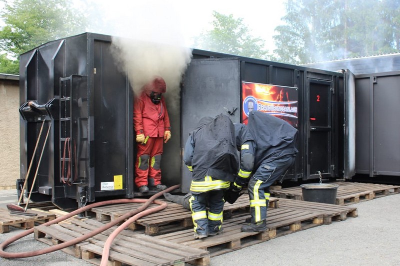 Nach einer theoretischen Unterweisung startete die praktische Ausbildung, die die Feuerwehrleute teilweise an ihre körperlichen Grenzen führte und auch die Grenzen ihrer Schutzkleidung kennenlernen ließ. Nach den jeweils zwanzigminütigen Durchgängen in der Brandübungsanlage folgte dann eine ausführliche Nachbesprechung mit dem jeweiligen Ausbilder.