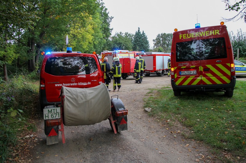 Um 16.45 Uhr alarmierte die Leistelle mit der Klingaer auch alle weiteren Parthensteiner Ortsfeuerwehren wegen eines vermuteten Brandes in der Kleingartenanlage am Pomßener Mühlteich. Die Lageerkundung ergab ein illegales Lagerfeuer, in dem Gartenabfälle verbrannt wurden. Dieses musste durch die Betreiber unter Aufsicht der Polizei abgelöscht werden.
