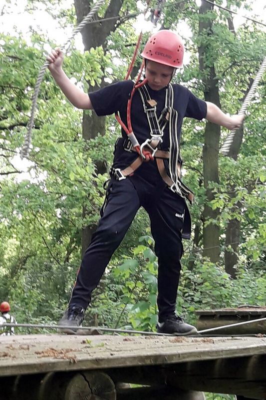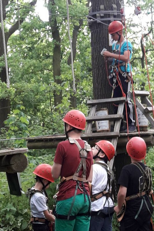 Gemeinsam mit Jugendfeuerwehrwart Steffen Schumann und Ronny Richter rollte die neu formierte Klingaer Jugendfeuerwehrmannschaft in den Kletterwald Leipzig. Dort verband sich für sie aktiver Freizeitspaß mit praktischem Nutzen für die zukünftige Feuerwehr-Arbeit: Vertieftes Kennenlernen, gegenseitige Unterstützung, gestärktes Vertrauen und die Gewöhnung an Höhe werden den Jungs später zugutekommen.