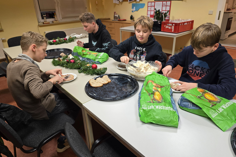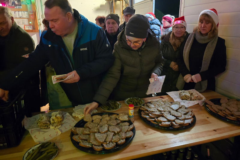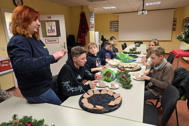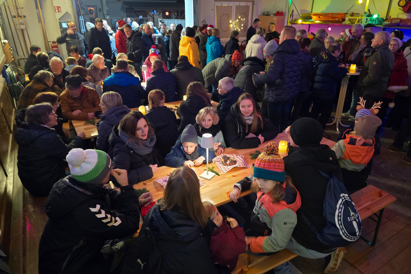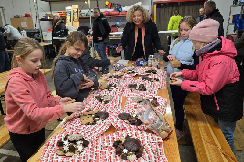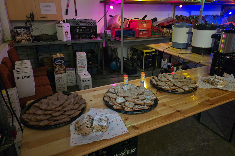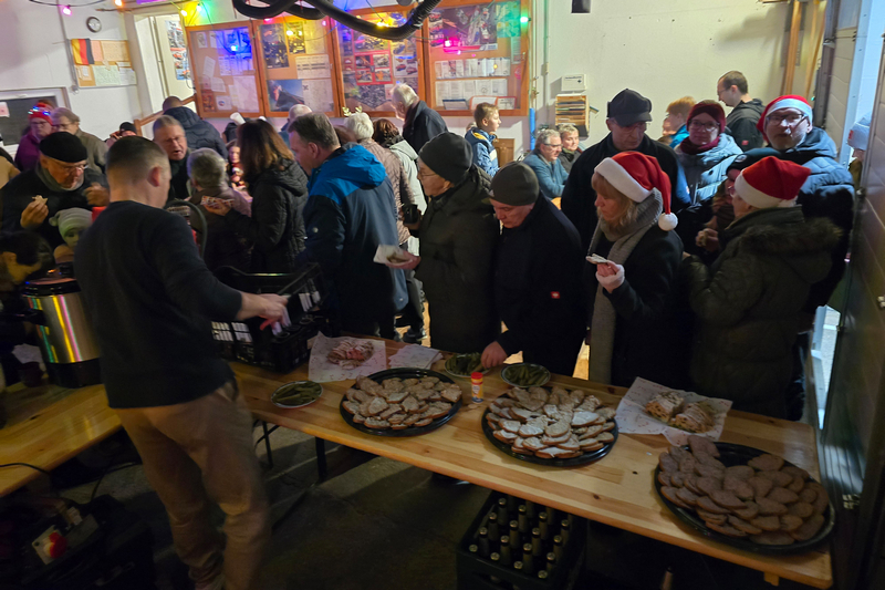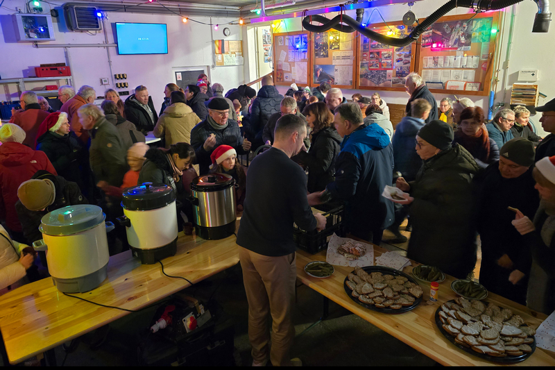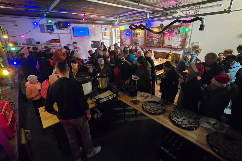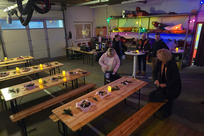 Doch zuvor galt es beim Weihnachts-Test erzgebirgische Traditionen wachzurufen. Natürlich stand der neue Feuerwehr-Schwibbogen dabei ganz oben auf der Liste, und das gemeinsame Singen des Steigerliedes rundete die Eröffnung klangvoll ab. Diesen Sonnabend waren so viele große und kleine Gäste gekommen, dass zur Stauvermeidung das Rolltor ganz geöffnet werden musste. Neben roten und weißen Glühwein gab es Kinderpunsch, auch eine Kiste mit Kaltgetränken fand sich unter dem Tisch. Dazu konnten sich die Gäste an Leberwurst- und Fettschnitten stärken. Die Jugendfeuerwehr bot ihre selbstgebackenen, verzierten Weihnachtsplätzchen in stilvoller Verpackung für einen kleinen Obolus an. Im prall gefüllten Gerätehaus und davor gab es anschließend zahlreiche Gespräche in entspannter Atmosphäre. Mit guten Wünschen für den 4. Advent und die Weihnachtszeit ging man schließlich auseinander und verabredete sich bereits für den Klingaer Glühwein-Empfang am 3. Januar.