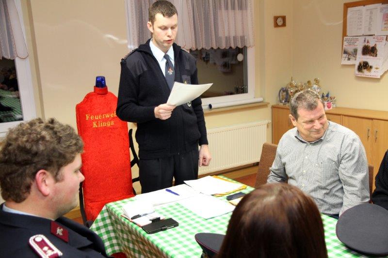 Mit sechs Einsätzen, darunter zwei Brandeinsätzen, blickten die Klingaer Feuerwehrleute auf ein vergleichsweise ruhiges Jahr zurück. Die Jugendfeuerwehr umfasste 12 Mitglieder, die neben ihrer Feuerwehrausbildung auch viele Stunden gemeinsamer Freizeit verbracht hatten. Ihren besonderen Dank richteten die Klingaer Feuerwehrleute an ihren Förderverein, mit dem sie vielfältige öffentliche Veranstaltungen auf die Beine gestellt und der zugleich auch die Jugendfeuerwehrarbeit und Kameradschaftspflege finanziell unterstützt hatte. Kamerad Steffen Schumann erhielt für zehnjährige aktive Feuerwehrarbeit aus den Händen von Bürgermeister Jürgen Kretschel das Ehrenkreuz in Bronze.