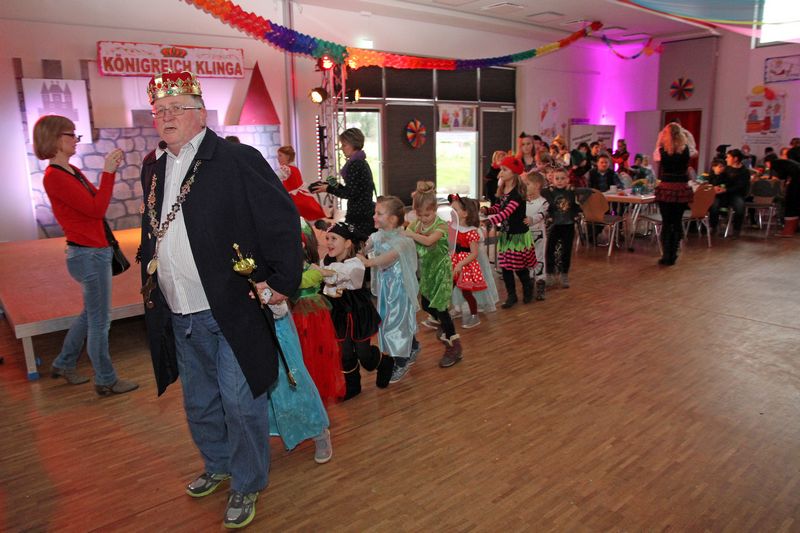 Drei Stunden Spiele, Spaß und Tanz sorgten für ausgelassene Stimmung bei Klingas jüngster Faschingsgeneration – und bei mindestens ebenso vielen erwachsenen Begleitern. Onkel Willi verlor nie die Nerven und hatte mit Unterstützung der Faschingscrew aus Feuerwehr und Förderverein das bunte Gewimmel ganz auf seiner Seite. Natürlich gab es auch in diesem Jahr wieder das wohlzensierte Faschingsprogramm, dem sich auch viele erwachsene Begleiter nicht entziehen wollten. Kühle getränke, Pfannkuchen und Wiener Würstchen sorgten für die nötige Stärkung der kleinen Geister, die wie immer nur einen symbolischen Euro Eintritt bezahlt hatten.