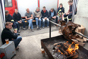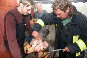 Nach fachlicher Manöverkritik und Auswertung des Wettbewerbs klang der Ausbildungstag mit einem 17-Kilogramm-Truthahn am Drehspieß gemütlich am Gerätehaus aus.