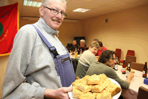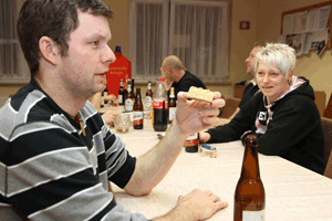 Im Anschluss gab es nicht nur das gemütliche Feierabendbier, sondern auch zwei Bleche voller leckeren Streuselkuchen. Den hatte Monika Stiller in guter Tradition aus den Butterresten vom Schlachtfest gebacken. Vielen Dank dafür!