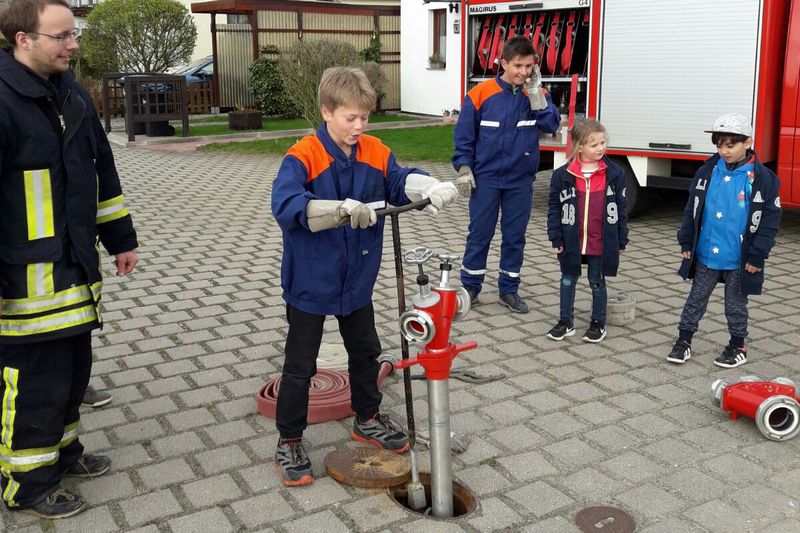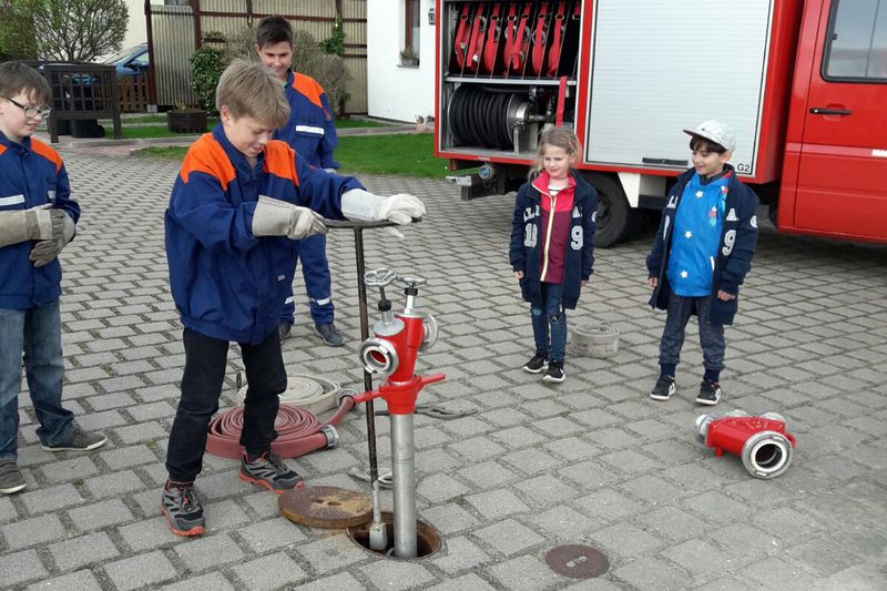 Sechs Jungen konnten seit diesem Jahr neu für die Jugendmannschaft begeistert werden. Damit der Nachwuchs auch in Zukunft Feuer und Flamme für das Thema bleibt, konnte er jetzt bei einer der ersten Ausbildungsstunden auch schon richtig Hand ans Strahlrohr legen. Jugendfeuerwehrwart Steffen Schumann und Ronny Richter trainierten mit den Jungen im Inneren Ortskern die Wasserentnahme aus Unterflurhydranten.