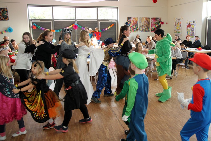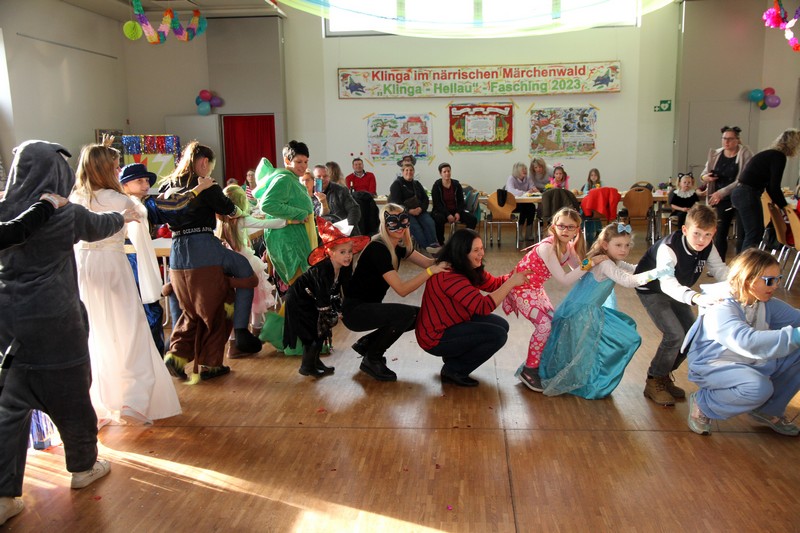 Das Team um Romy Schlegel und Cindy Hellmann hatte ein abwechslungsreiches Programm mit Spielen und Tänzen vorbereitet – und dabei alle Hände voll zu tun, die bunte, quirlige Narrenschar zu bändigen. Die Mädchen und Jungen konnten sich für einen symbolischen Euro Eintritt mit Getränken erfrischen und an Pfannkuchen und Wiener Würstchen stärken. Es schien, sie hatten dadurch mitunter mehr Energie als die Faschingscrew. Aber die hatte nach dem gestrigen Fasching nur eine kurze Nacht und gab trotzdem noch einmal alles. So war es Maria und Frank Scholz auch in diesem Jahr gelungen, das Showprogramm vom Vorabend auf eine kindergerechte Version umzuschreiben. Die Knirpse hatten daran ihren Spaß, vor allem aber an den Bergen von Konfetti, von denen zur Freude der Eltern sicher einiges mit nach Hause gewandert war.