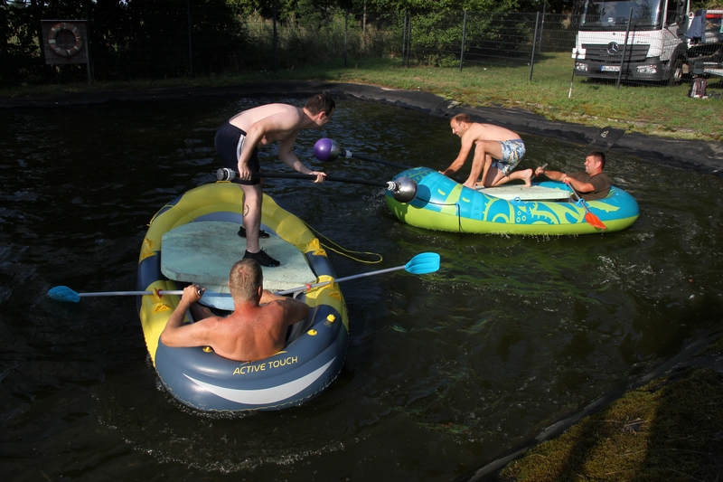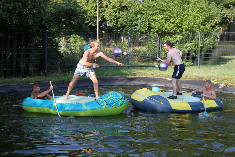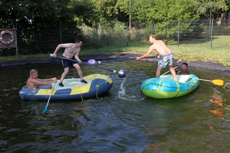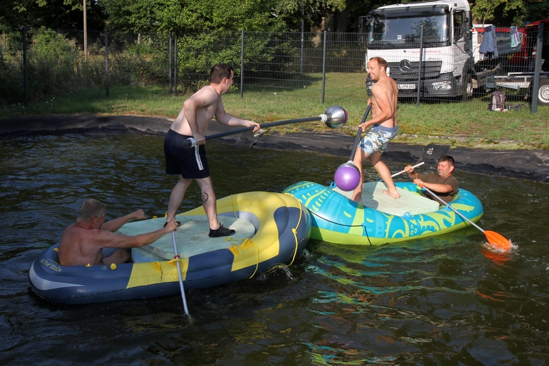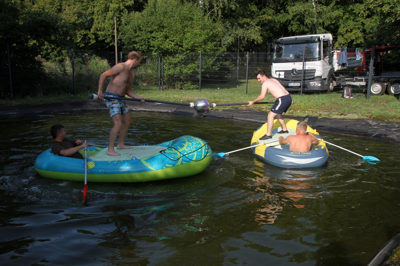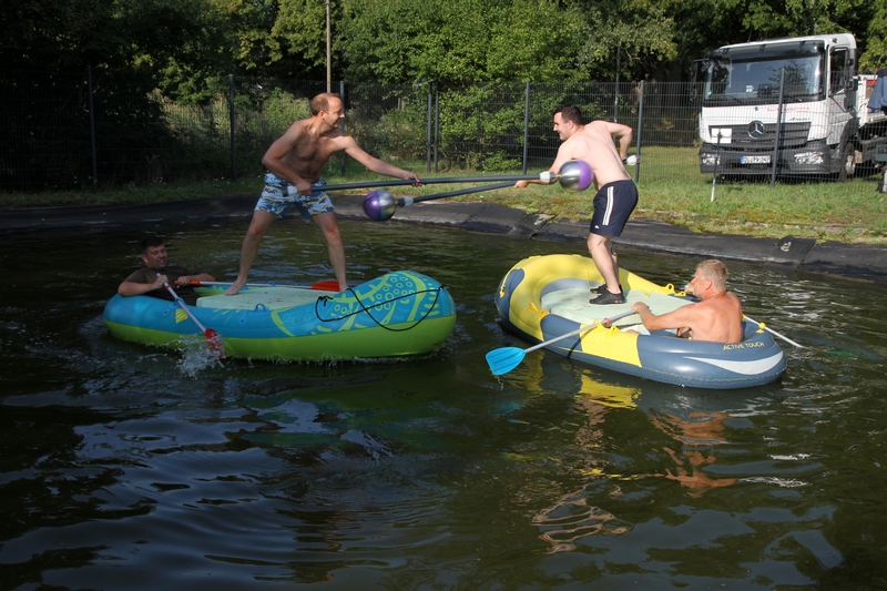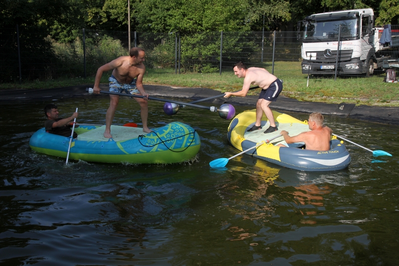Die in den vergangenen Jahren eingesetzten Lanzen waren störanfällig und nach Wasserkontakt auch sehr schwer. Die Fördervereinsmitglieder Michael Ziegler und Dietmar Schinkel investierten daher mit zahlreichen Mitstreitern im Hintergrund viel Zeit, um hier eine neue Lösung zu finden. Das Ergebnis kann sich sehen lassen: Die neuen Lanzen wurden heute feuerwehr- und vereinsintern getestet und erwiesen sich im Umgang als gut handhabbar. Doch damit nicht genug: Das Team baute zusätzlich noch drei Wanderpokale für die Sieger der jeweiligen Wettbewerbsklassen. Wollt ihr mit von der Partie sein? – Dann meldet euch am 17. August ab 14.30 Uhr am Senfberg für das diesjährige Fischerstechen an!
