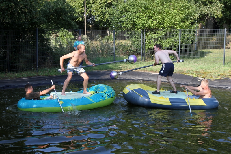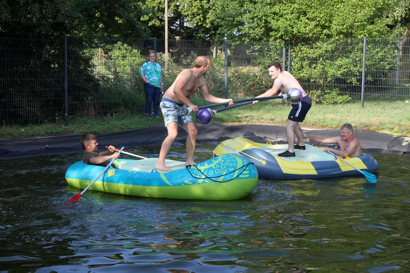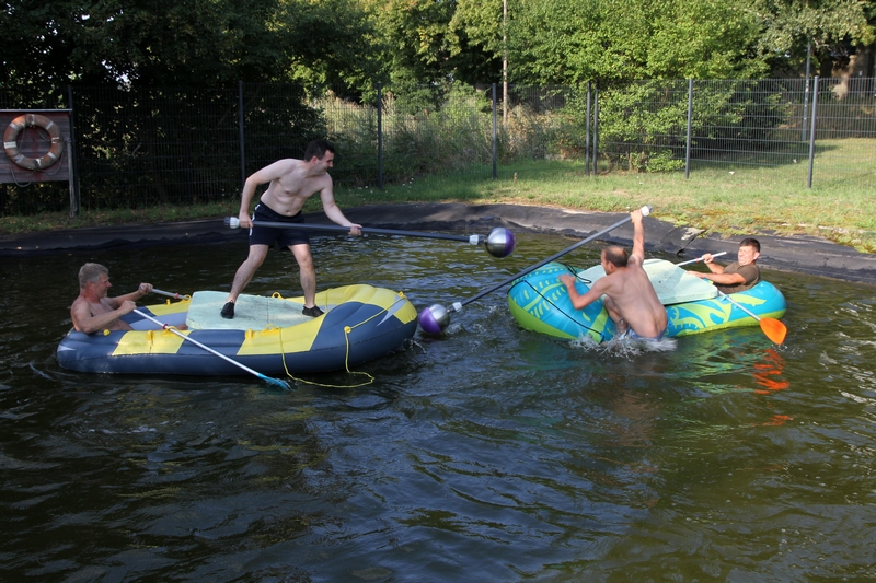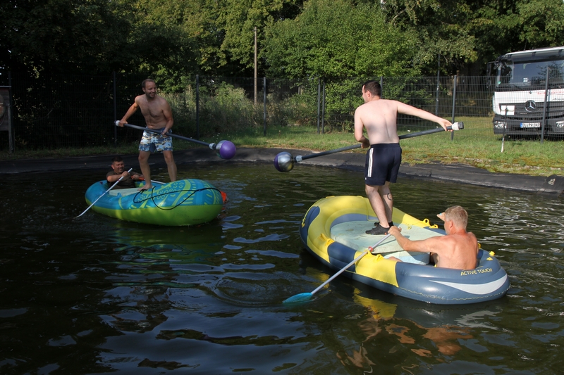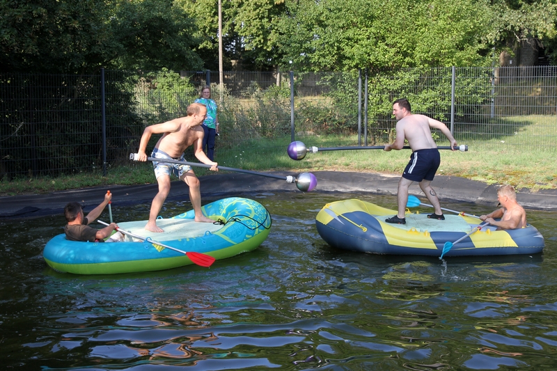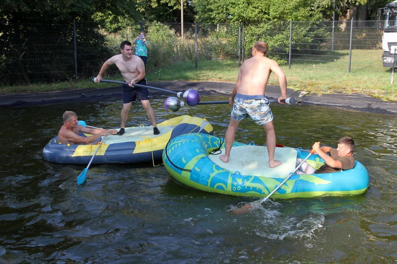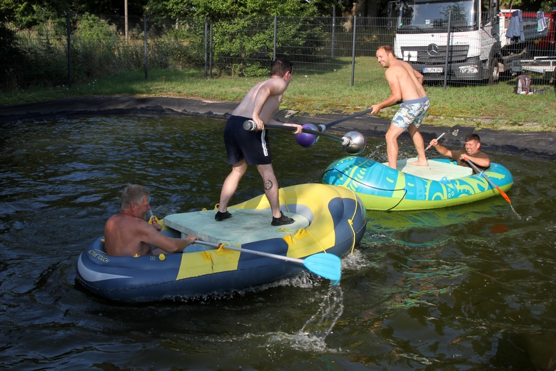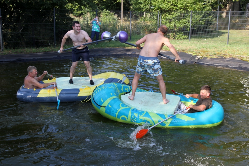 Die in den vergangenen Jahren eingesetzten Lanzen waren störanfällig und nach Wasserkontakt auch sehr schwer. Die Fördervereinsmitglieder Michael Ziegler und Dietmar Schinkel investierten daher mit zahlreichen Mitstreitern im Hintergrund viel Zeit, um hier eine neue Lösung zu finden. Das Ergebnis kann sich sehen lassen: Die neuen Lanzen wurden heute feuerwehr- und vereinsintern getestet und erwiesen sich im Umgang als gut handhabbar. Doch damit nicht genug: Das Team baute zusätzlich noch drei Wanderpokale für die Sieger der jeweiligen Wettbewerbsklassen. Wollt ihr mit von der Partie sein? – Dann meldet euch am 17. August ab 14.30 Uhr am Senfberg für das diesjährige Fischerstechen an!