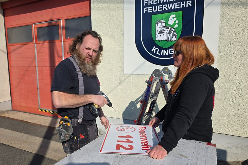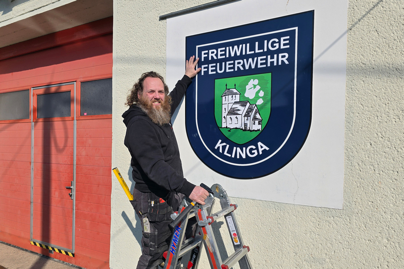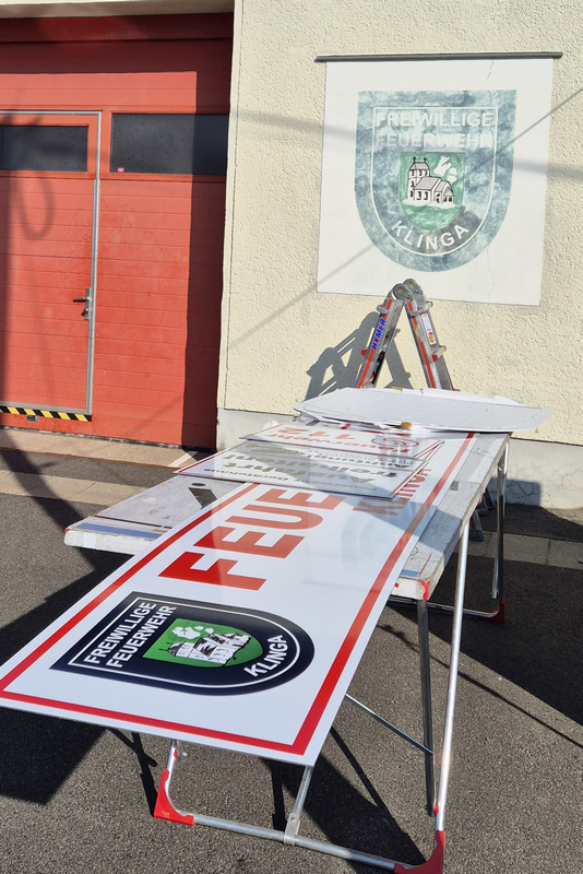 Heute erhielt das Klingaer Feuerwehr-Gerätehaus eine neue und moderne Beschilderung.