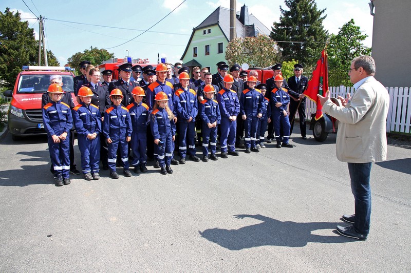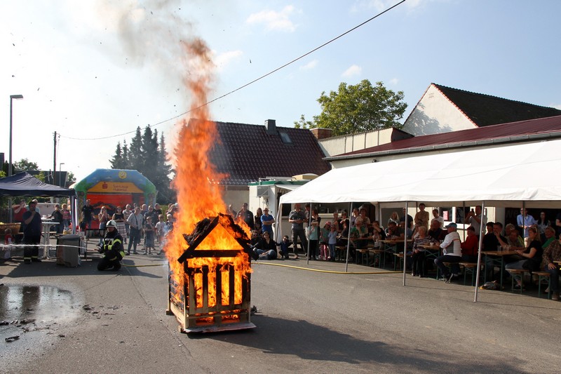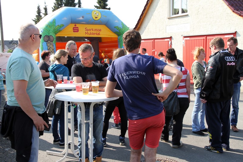 Neben der Faszination „Feuerwehr“ an sich trugen dazu auch verschiedene Angebote für jede Altersgruppe bei. Vom reich gedeckten Kuchenbüffet über Schminken und Basteln, Löschen mit der Kübelspritze, Toben auf der großen Hüpfburg bis hin zur Technikschau verflogen die Nachmittagsstunden bei bestem Sonnenwetter rasch. Einen besonderen Höhepunkt bot die Vorführung der Klingaer Jugendfeuerwehr. Die Mädchen und Jungen demonstrierten anschaulich, wie ein Rauchmelder Leben retten kann und wie sie einen „Gebäudebrand “ löschen. Durstlöscher ganz nach Geschmack wurden durch Heißes vom Grill und am Abend auch von flotter Tanzmusik ergänzt.