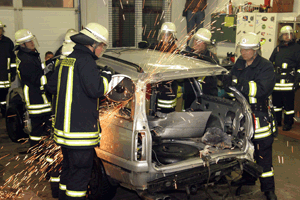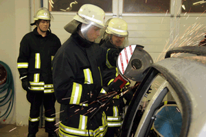 Im Rahmen ihrer Ausbildung trainierten die Kameraden der Freiwilligen Feuerwehr Klinga jetzt den Umgang mit der Rettungssäge, die im Rahmen der technischen Hilfeleistung vor allem bei Fahrzeugunfällen zum Einsatz kommt.