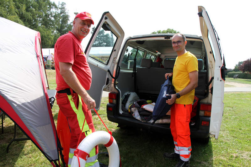 Zugleich konnten sich unsere kleinen Besucher schminken lassen, an der Tombola Kinderüberraschungstüten zugunsten der Jugendfeuerwehr gewinnen, auf der Hüpfburg toben, Spiele spielen und Rundfahrten mit der Feuerwehr genießen. Als besondere Gäste konnten wir Vertreter der DLRG Ortsgruppe Parthenaue begrüßen. Sie hatten ein Rettungsboot und einen Infostand mitgebracht, wo sich unsere Besucher informieren oder auch Erste-Hilfe-Maßnahmen ausprobieren konnten.
