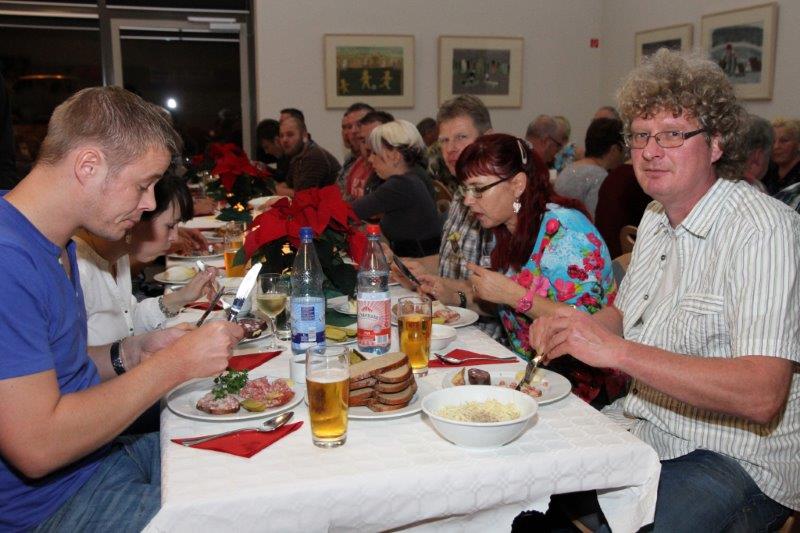Knacker, Blut- und Leberwürste, Hackepeter, Wurstsuppe und Wellfleisch wanderten rasch in die hungrigen Mägen der Feuerwehr- und Vereinsmitglieder sowie deren Partner. Auch zum Nachspülen fand jeder ausreichend Getränke ganz nach persönlichem Geschmack. Mit Bildern vom Feuerwehr- und Fördervereinsjahr ließen die Klingaer die bisherigen Einsätze, Ausbildungsstunden und Veranstaltungen Revue passieren und schmiedeten bereits neue Pläne für 2015. Bei Musik vom DJ konnte anschließend jeder ausgelassen das Tanzbein schwingen und einen entspannten, gemeinsamen Abend verbringen.
