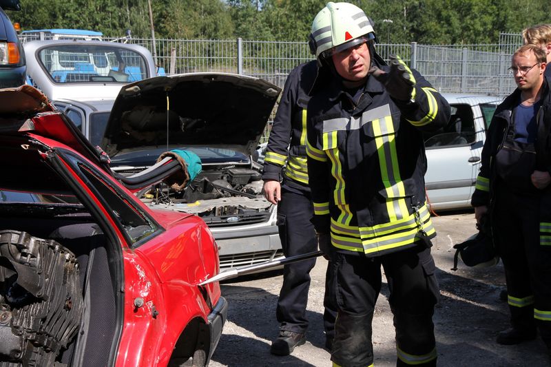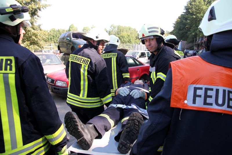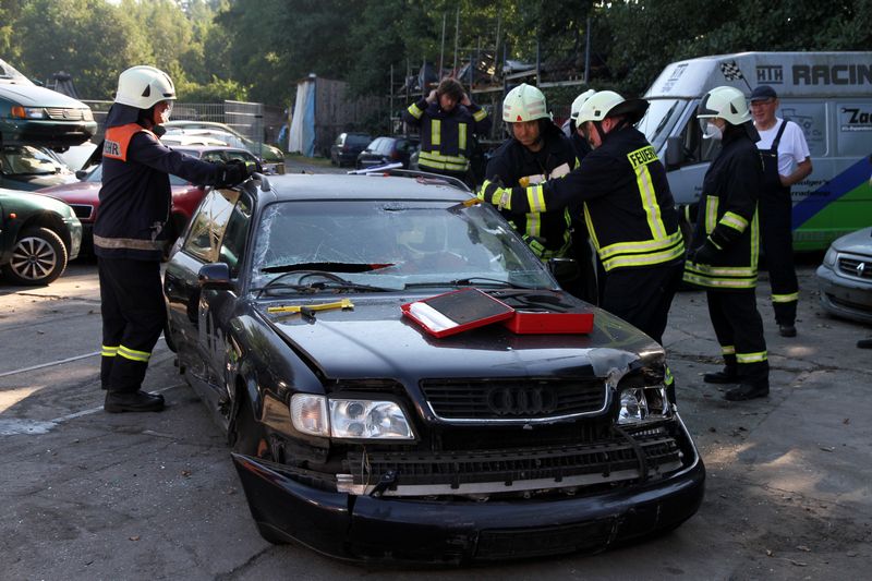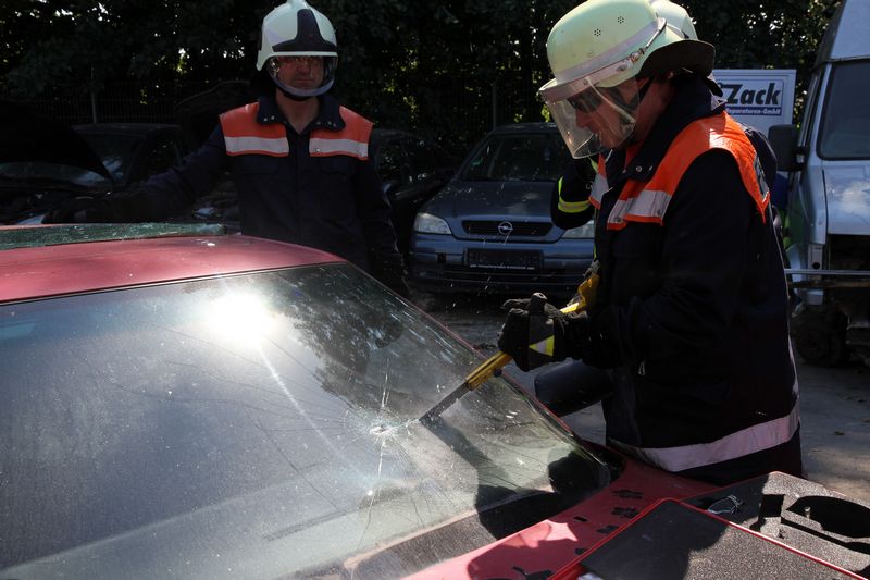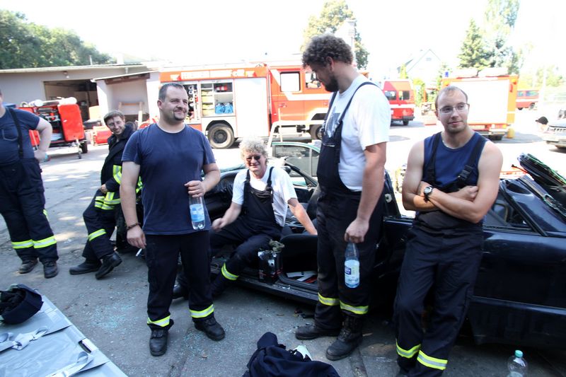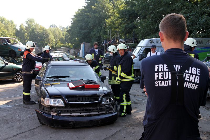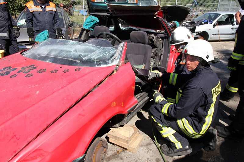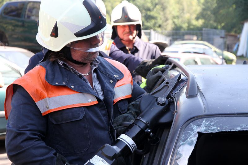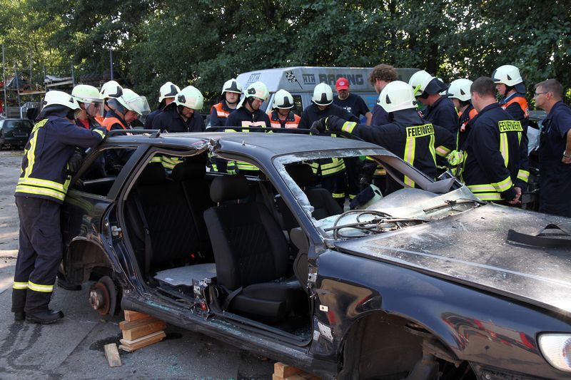 Zum Thema „Technische Hilfeleistung mit hydraulischen Rettungsgeräten und patientengerechte Rettung“ trafen sich die Klingaer Einsatzkräfte gemeinsam mit Naunhofer Feuerwehrleuten auf dem Betriebsgelände der Ammelshainer Firma Kadyk & Kadyk Abschlepp- und Bergedienst. Die Firma stellte vier Fahrzeuge zur Verfügung, an denen die Feuerwehrleute unter Anleitung der Naunhofer Ausbilder Ulf Kendschek und Lars Schuhmann taktische Themen und den Einsatz der in den Feuerwehren vorhandenen Technik trainierten. Im Mittelpunkt standen die Rettung verunfallter Personen aus Pkw unter Sicherung der Unfallfahrzeuge. Vom Glasmanagement über das Halligan Rescue Tool bis zum neuen Klingaer Schere-Spreizer-Kombigerät wurden alle Möglichkeiten erprobt und zugleich auch Grenzen der Hilfsmittel erkannt.