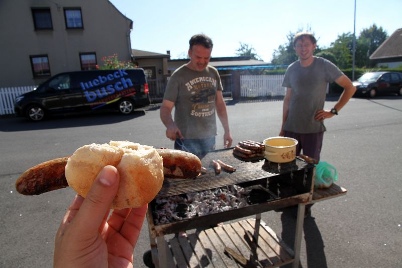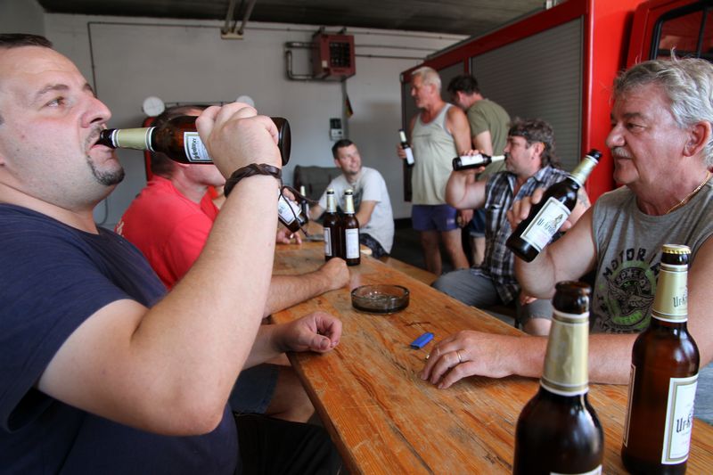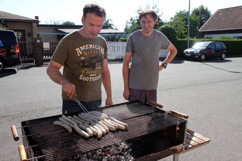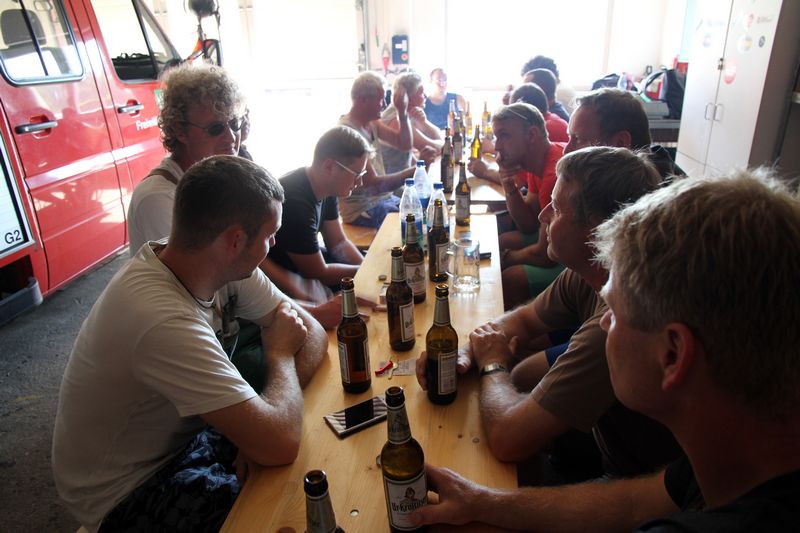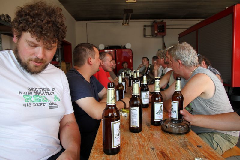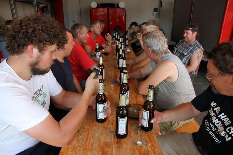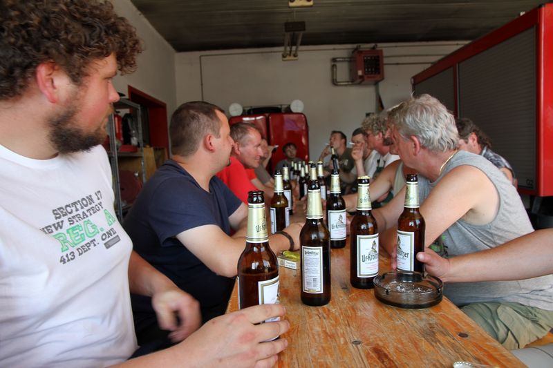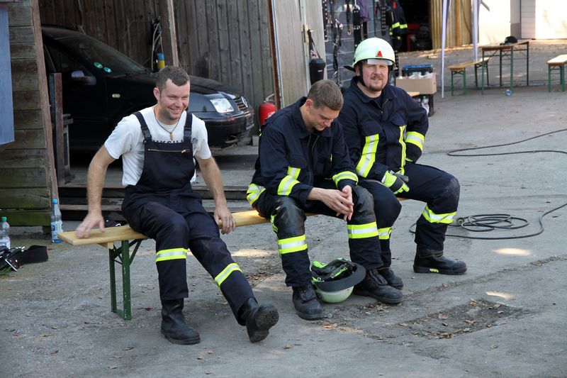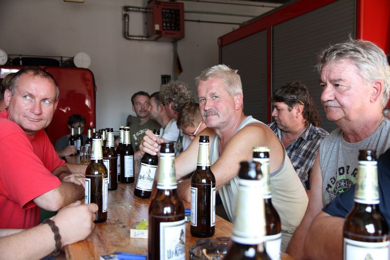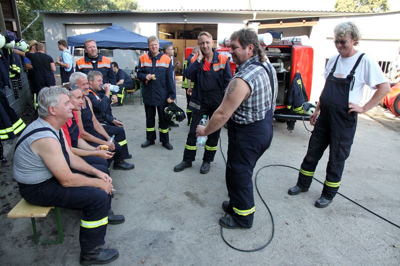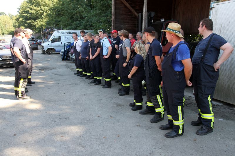 Nach dem sonnigen Ausbildungstag bot sich bei weit über 30 °C ein Sprung in die kühlen Ammelshainer Fluten an, bevor bei Löschwasser und Heißem vom Grill der Tag im Feuerwehrgerätehaus gemütlich ausklang.