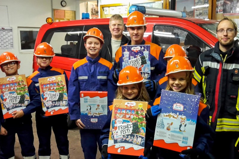 Klingas Feuerwehrjugend freute sich über ihren traditionellen Adventsgruß vom Förderverein.