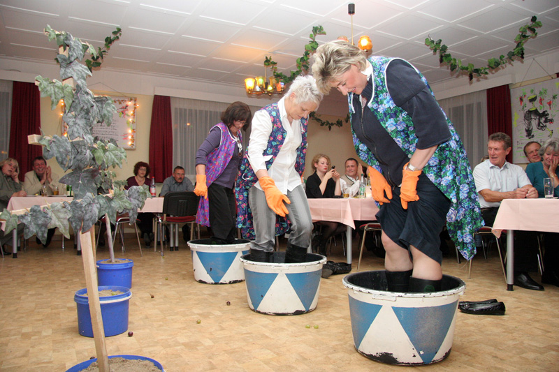 “Bei Trunk und Scherz bleibt froh das Herz” – so hatte Willi Hilsberg in großen Lettern das Motto des diesjährigen Klingaer Weinfests im Kultursaal unübersehbar angebracht. Doch das musste den Gästen der herbstlichen Party nicht erst extra gesagt werden, denn sie hatten diesen Leitsatz schon längst verinnerlicht. Bei Musik nonstop mit DJ Maik bedurfte es keiner besonderen Aufforderung, rasch die Tanzfläche zu füllen. Für das Auffüllen der verbrauchten Kalorien sorgte in bewährter Weise das Team um Jens Stottmeister, das auch nicht nur goldene oder rote Rebensäfte für die durstigen Kehlen im Gepäck hatte. Schon traditionell startete der Abend mit dem Wettstreit um die Krone der neuen Klingaer Weinkönigin. Beim Wissensquiz der 36 Bewerberinnen setzten sich Ursula Seidel aus Hohenprießnitz sowie Susann Luebeck-Busch und Nadine Rennhack aus Klinga an die Spitze und zogen so ins Finale der praktischen Prüfungen ein. Hatte beim Weintrauben-Dart noch Ursula Seidel die Nase vorn, setzte sich beim anschließenden Lesen und Mosten Susann Luebeck-Busch mit 1,3 Litern Traubensaft durch. So war ihr die Krone – sprich: das Diadem – der 15. Klingaer Weinkönigin genauso sicher wie der Eröffnungswalzer mit ihrem “Prinzgemahl” Jens. Der guten Stimmung im herbstlich dekorierten Kultursaal tat auch der eingeflogene Alleinunterhalter “Fredo Fröhlich” glücklicherweise keinen Abbruch, obgleich sein Auftritt eigentlich für einen Stimmungsschub sorgen sollte. Deutlich mehr Applaus erntete dafür Maria Scholz, die mit Live-Gesang ihr Publikum wirklich begeisterte. Bis in den Morgen hielten so viele Klingaer und Gäste aus der Region mit Begeisterung zwischen Tanzfläche und Bar aus – und versprachen, zum nächsten Weinfest wiederzukommen.