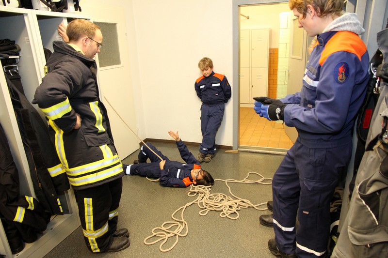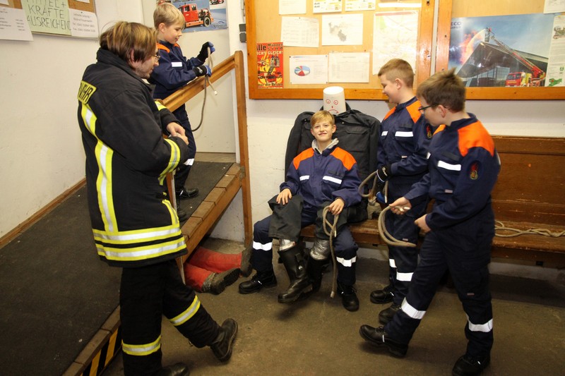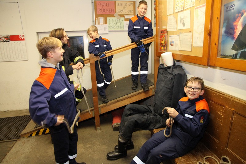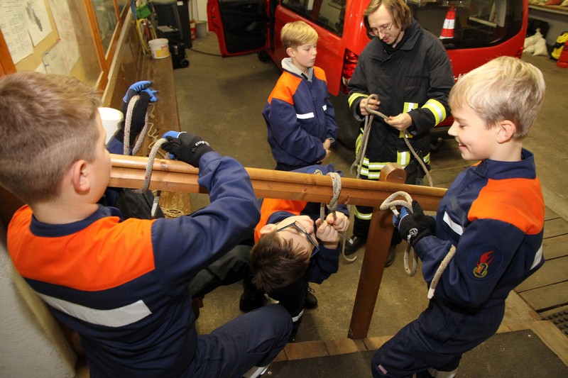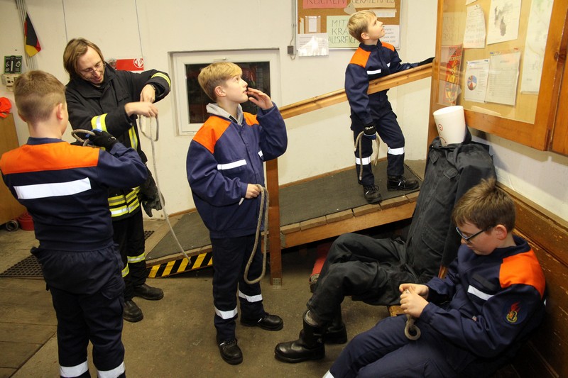Dazu hatten Peter Baudisch, Ronny Richter und Jugendfeuerwehrwart Steffen Schumann Stationen vorbereitet. Dort trainierten die Mädchen und Jungen Knoten, den Einsatz von Hilfsmitteln im Löscheinsatz und die richtige Platzierung der Ausrüstung im Fahrzeug.