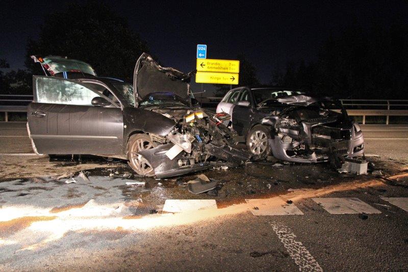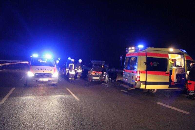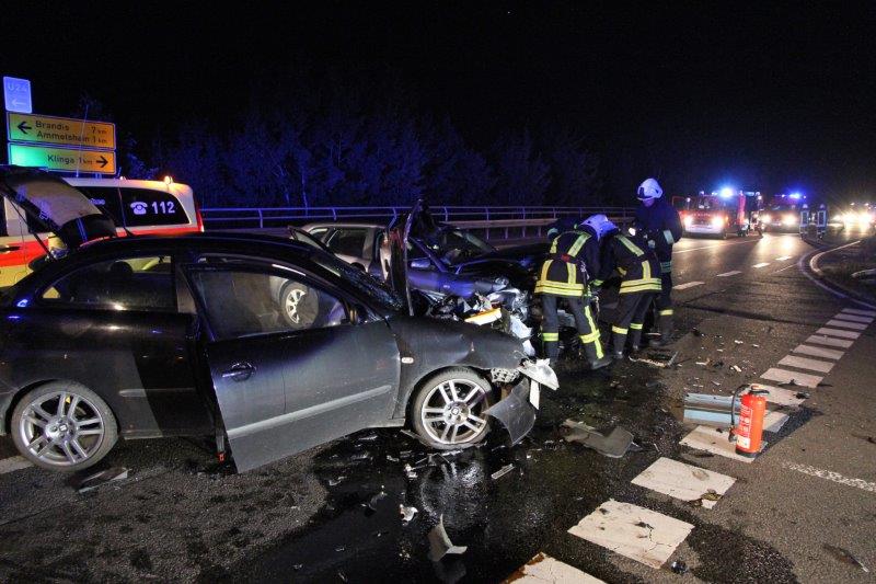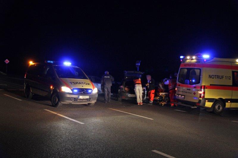 Für ein Großaufgebot an Blaulichtern sorgte am frühen Morgen ein Verkehrsunfall mit verletzten Personen an der Autobahnauffahrt Klinga.