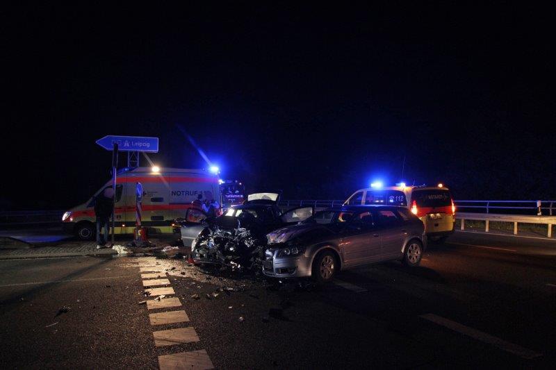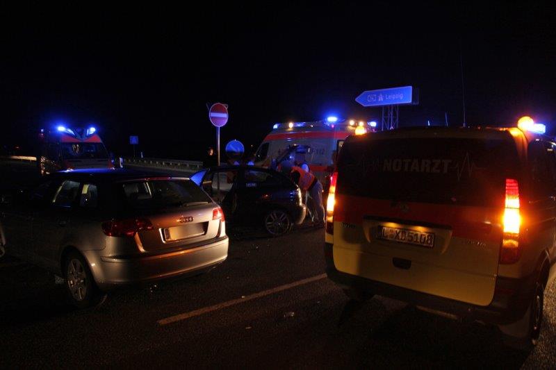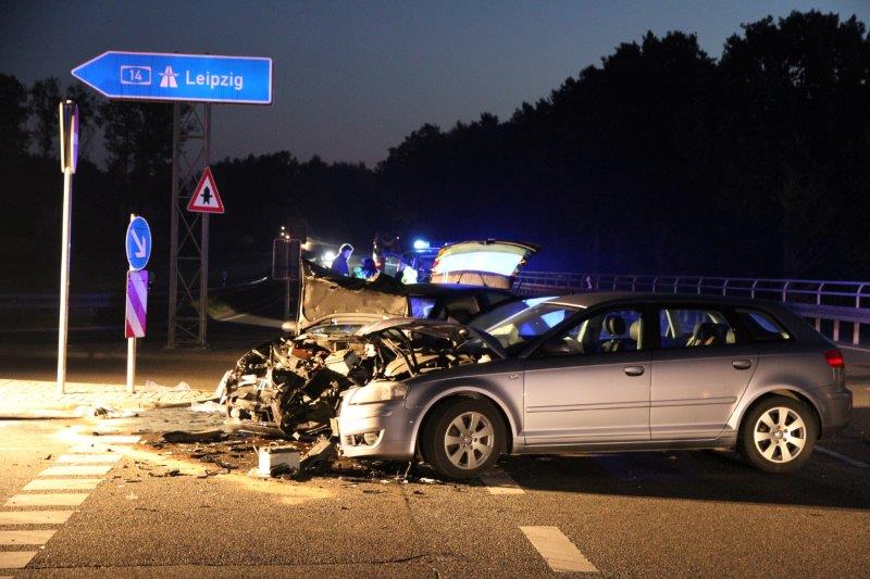 Um 05.16 Uhr rief die Leitstelle die Feuerwehr Klinga zum Einsatz. An der Auffahrt zur Autobahn A14 war offenbar ein Pkw Audi beim Abbiegen mit einem Pkw Seat kollidiert. Es entstand erheblicher Sachschaden an beiden Fahrzeugen, drei Personen wurden notärztlich versorgt und ins Krankenhaus transportiert.