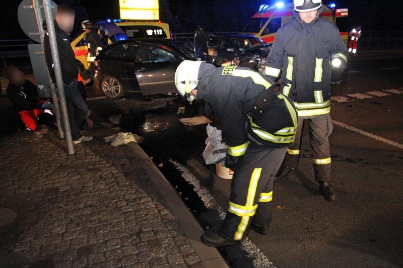 Die Klingaer Einsatzkräfte sicherten die Einsatzstelle und leuchteten sie aus, machten die verunfallten Pkw stromlos und banden ausgelaufene Betriebsstoffe.